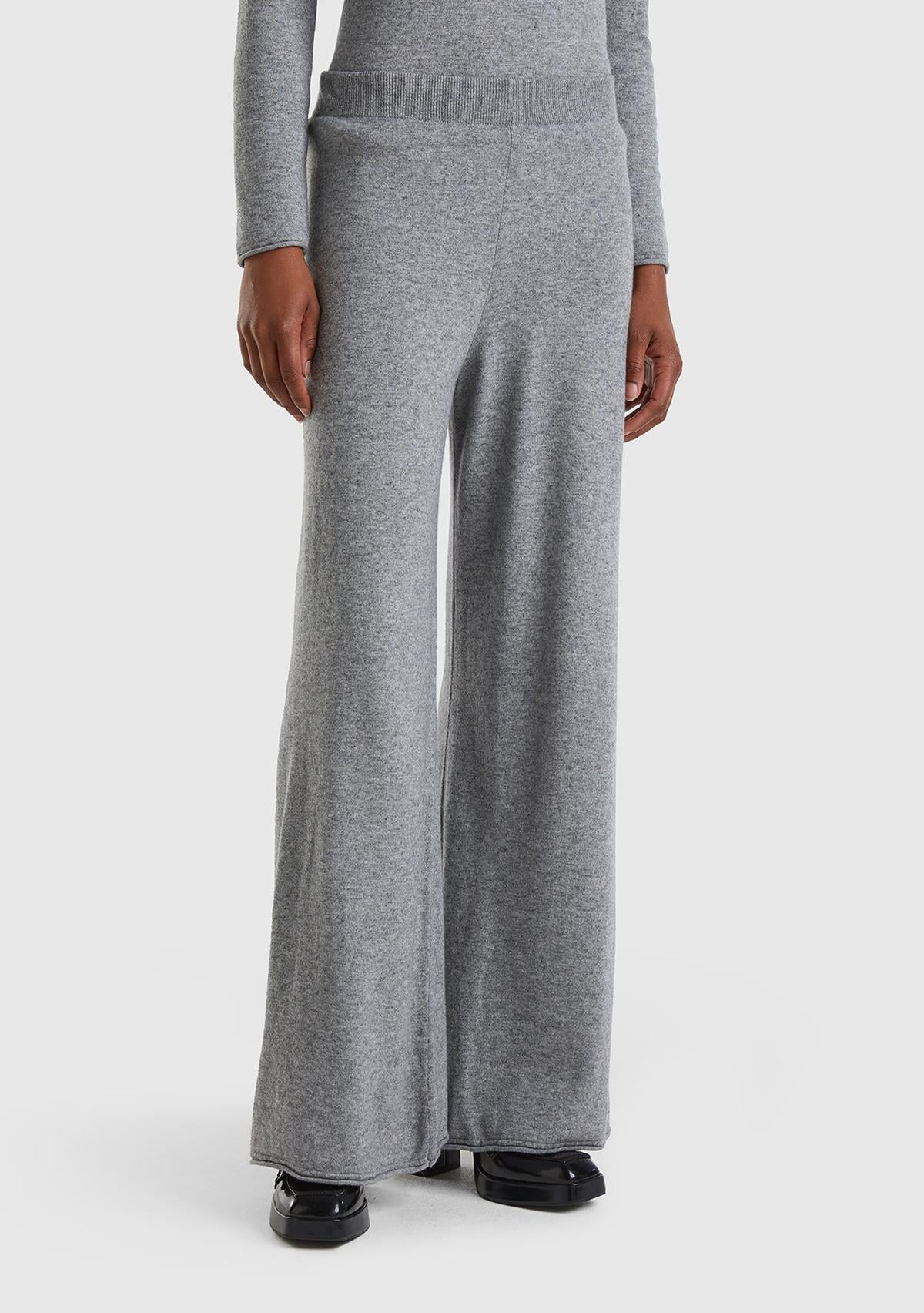 Kadın Gri Kaşmir Karışımlı Triko Eşofman Altı. Koyun-Keçi Yünü İçerir