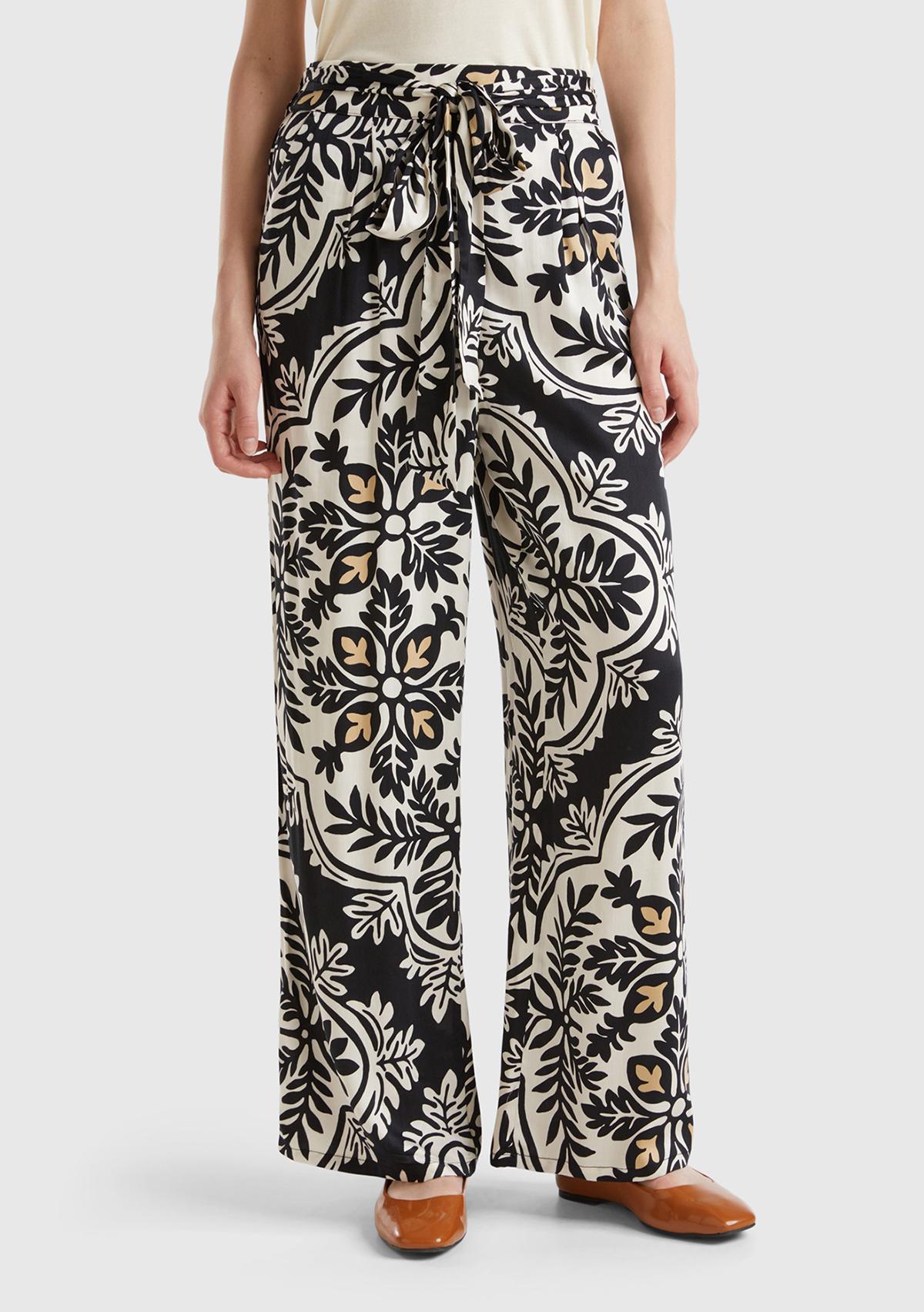 Kadın Gümüş %100 Viskoz Beli Bağlama Detaylı Tamamı Baskılı Pantolon