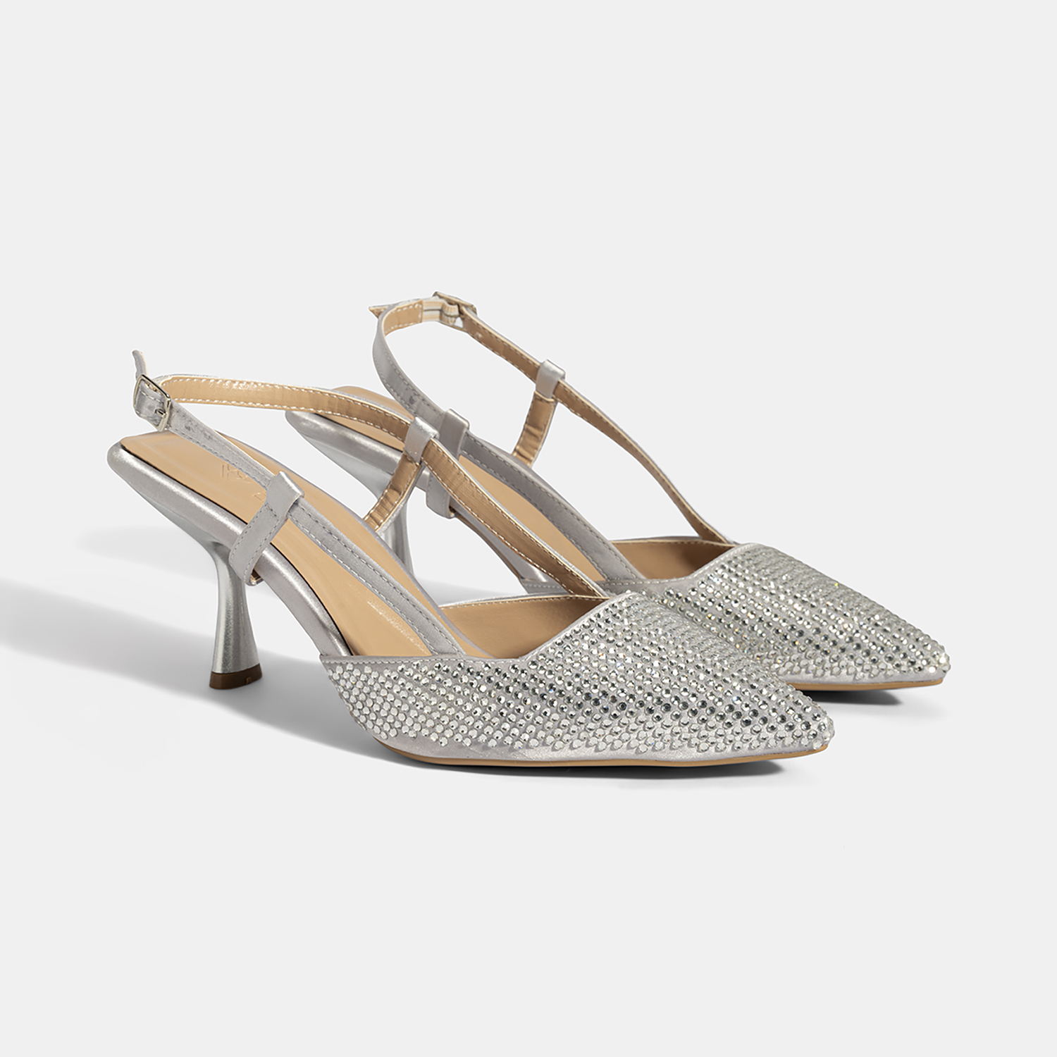 Kadın Gümüş Ayarlanabilir Metal Tokalı Taşlı Abiye Ayakkabı