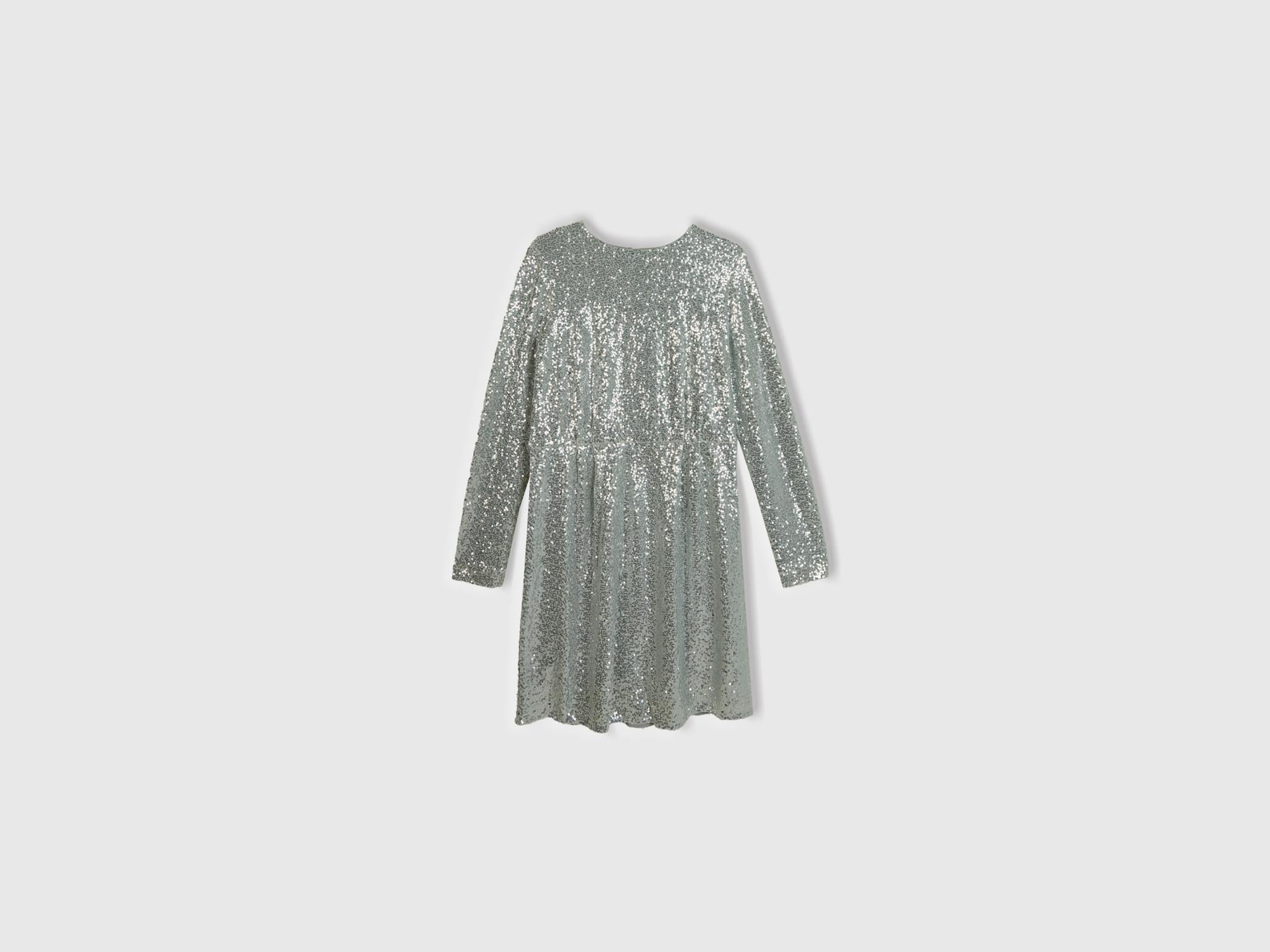 Kadın Gümüş İçi Jarse Astarlı Sırt Detaylı Uzun Kollu Simli Elbise