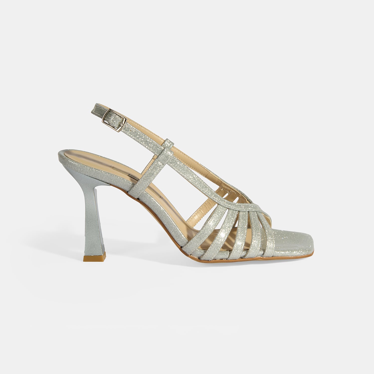 Kadın Gümüş Simli Topuklu Abiye Sandalet