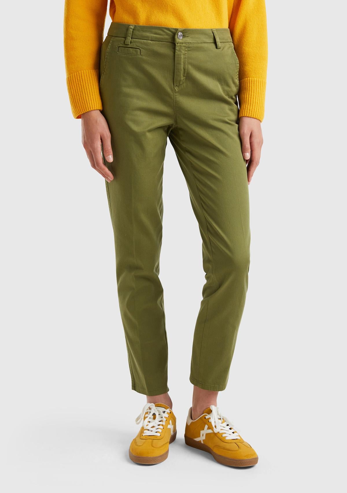 Kadın Haki Elastanlı Basic Chino Pantolon