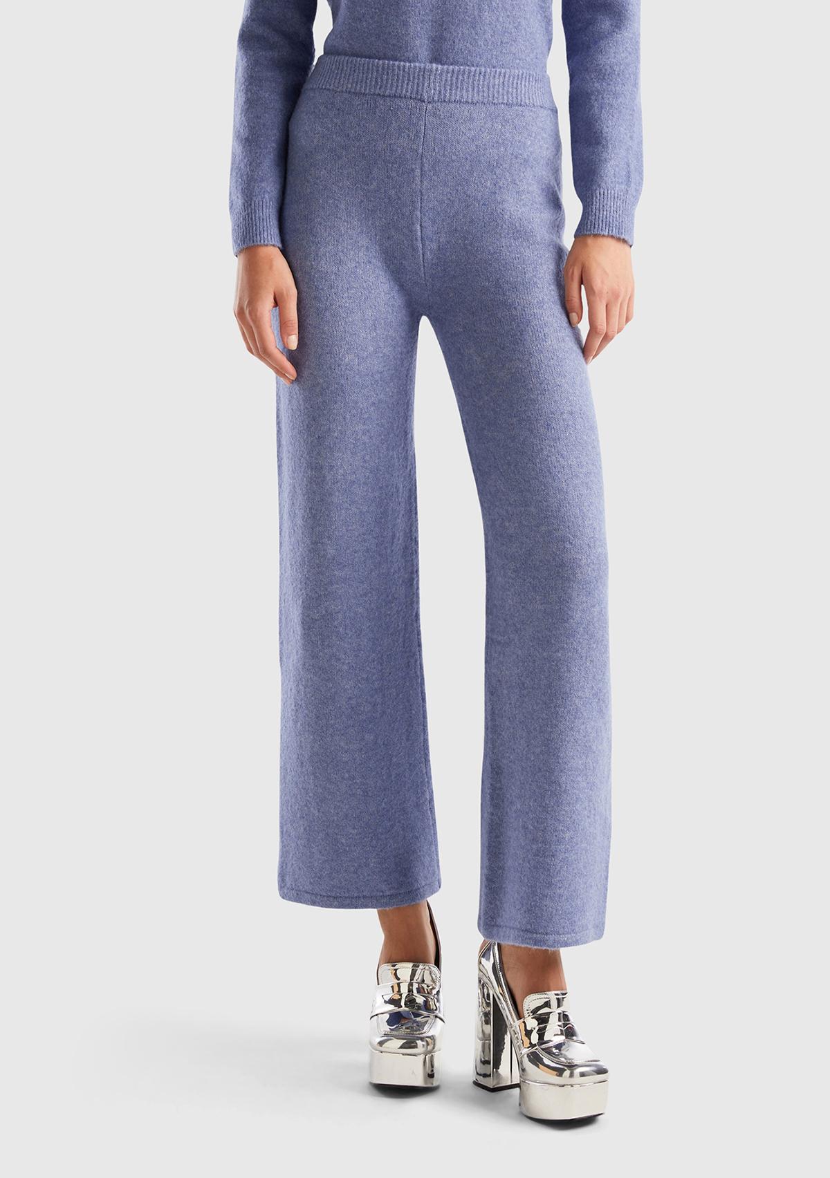 Kadın Havacı Mavi Yün Karışımlı Şardonlu Triko Pantolon
