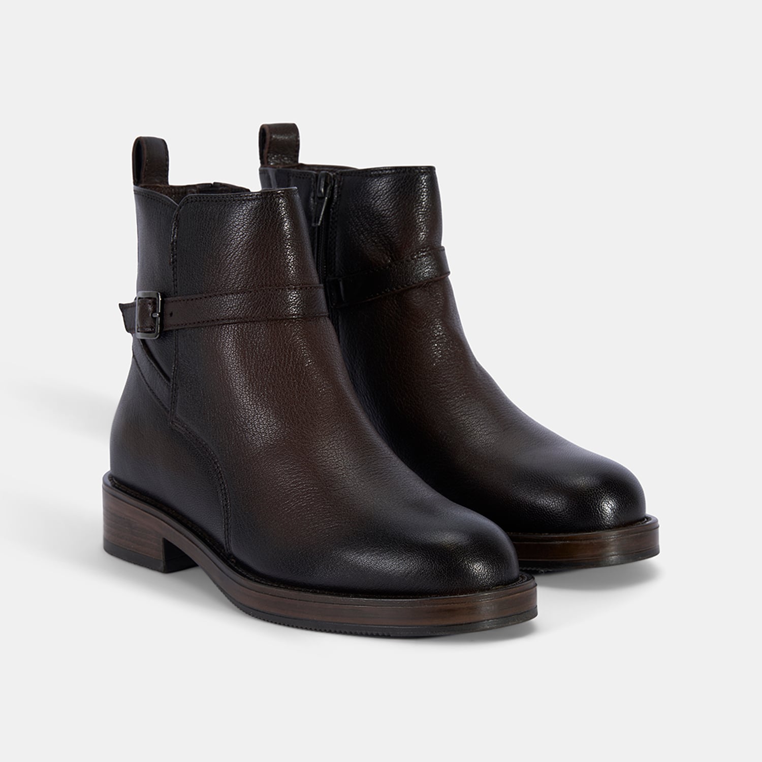 Kadın Kahve Ayarlanabilir Tokalı Deri Bot