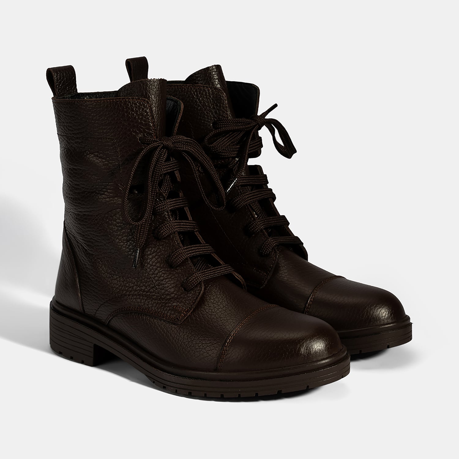 Kadın Kahve Bağcıklı Deri Postal Bot