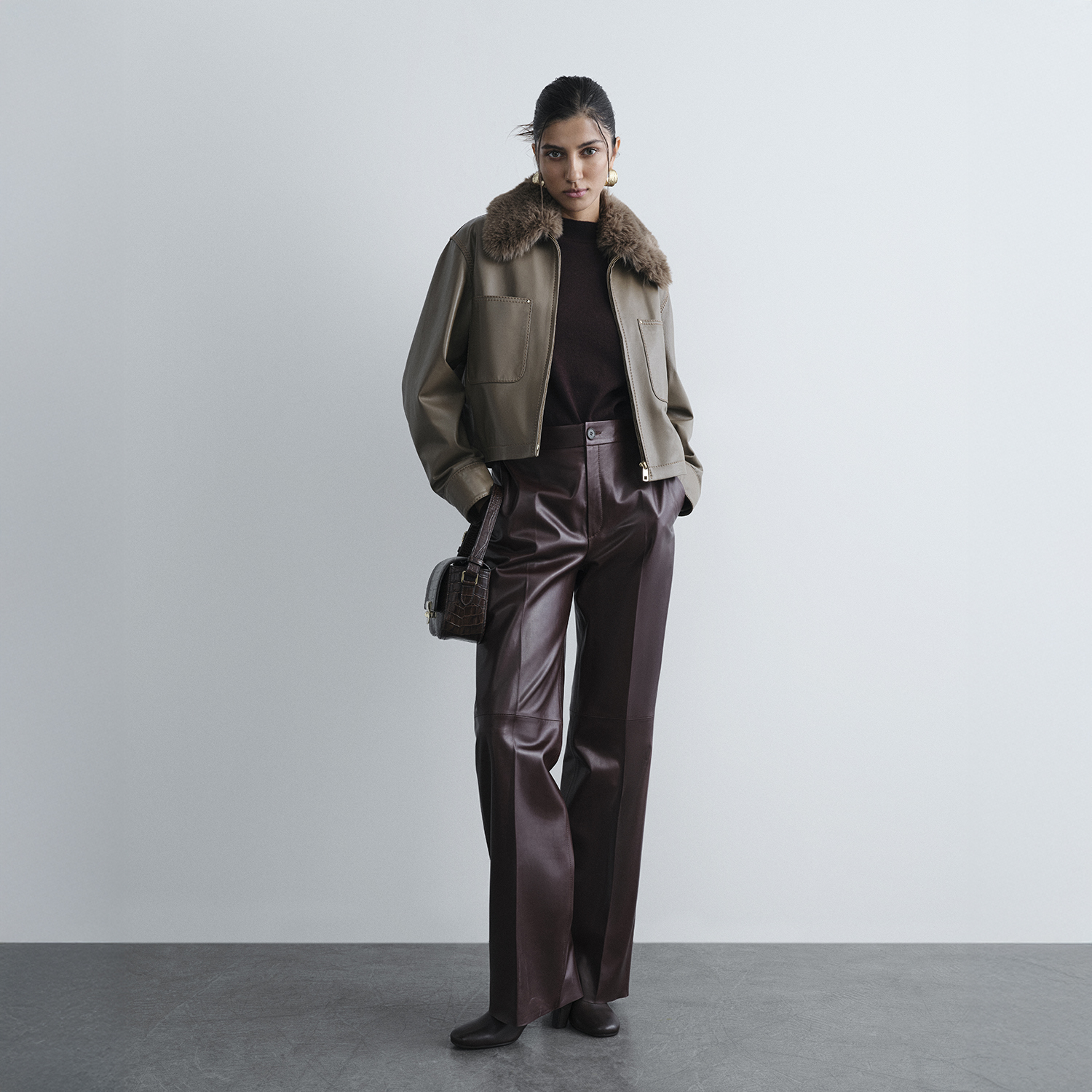 Gömlek yakalı ve önden metal fermuar kapamalı kısa deri ceket, modern ve şık bir görünüm sunar. Yaka kısmında çıkarılabilir kürk görünümü tasarıma zarif bir dokunuş ekler. Rahat kalıbı sayesinde gün boyu konfor sağlar. İki adet üstten ve iki adet yandan girişli cepler pratik kullanım imkânı sunar. Spor dikiş detayları cekete hareket ve karakter kazandırır. %100 koyun derisinden üretilmiştir. Koyun derisinden üretilmiş dış yüzeyi, et endüstrisinin yan ürünlerinden elde edilen derilerin Leather Working Group Altın sertifikalı tesislerde işlenmesiyle elde edilmiştir ve bilinçli bir üretim anlayışını yansıtır; astarlı iç yapısı ise kullanım konforunu destekler. -Gömlek yakalı ve önden metal fermuar kapamalı kısa deri ceket, modern ve şık bir görünüm sunar. Yaka kısmında çıkarılabilir kürk görünümü tasarıma zarif bir dokunuş ekler. Rahat kalıbı sayesinde gün boyu konfor sağlar. İki adet üstten ve iki adet yandan girişli cepler pratik kullanım imkânı sunar. Spor dikiş detayları cekete hareket ve karakter kazandırır. %100 koyun derisinden üretilmiştir. Koyun derisinden üretilmiş dış yüzeyi, et endüstrisinin yan ürünlerinden elde edilen derilerin Leather Working Group Altın sertifikalı tesislerde işlenmesiyle elde edilmiştir ve bilinçli bir üretim anlayışını yansıtır; astarlı iç yapısı ise kullanım konforunu destekler.