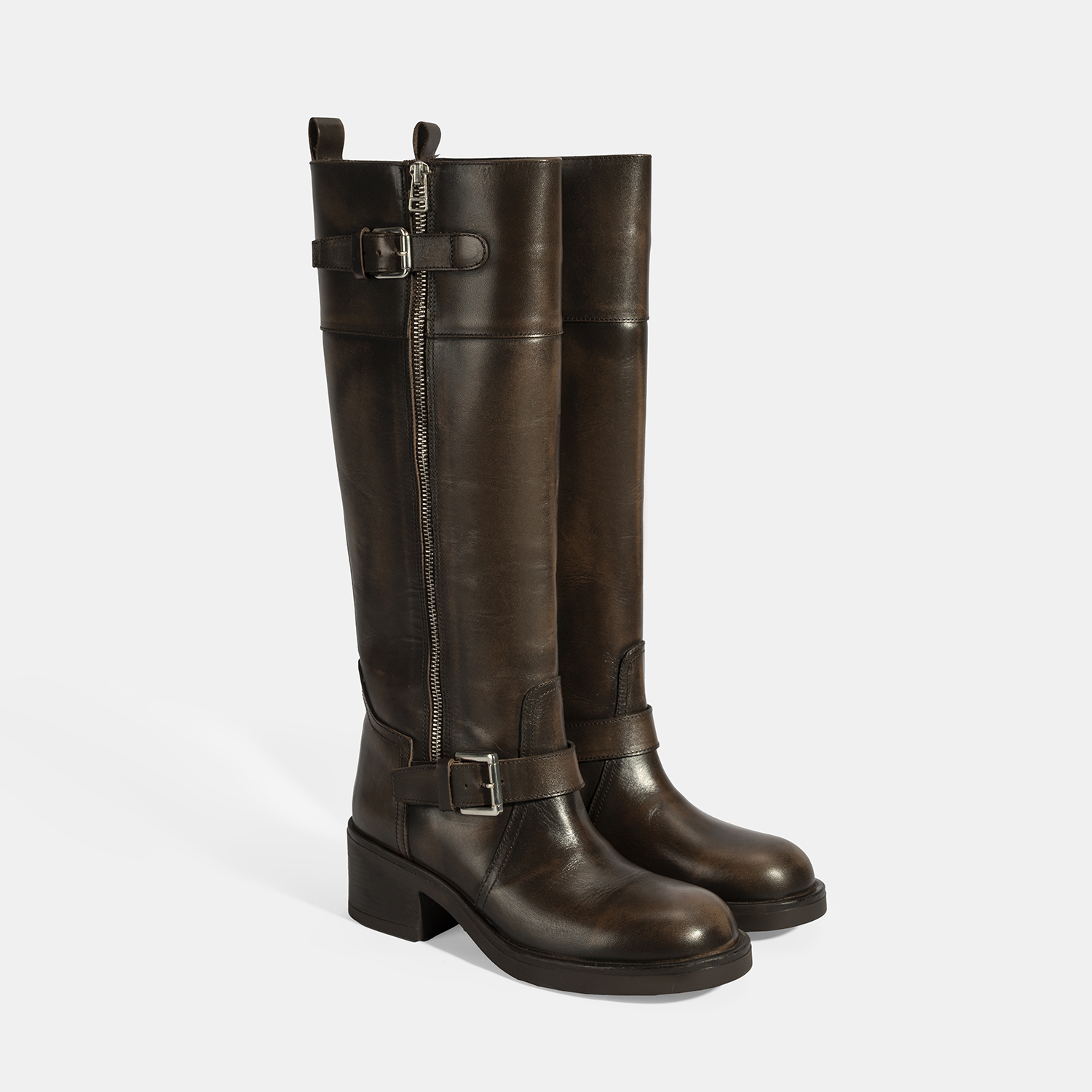 %100 eskitme detaylı deri, deri iç tabanlı, tekstil astarlı, metal toka detaylı, termo tabanlı, içten fermuarlı kadın çizme. Topuk yüksekliği: 4,5 cm.-%100 eskitme detaylı deri, deri iç tabanlı, tekstil astarlı, metal toka detaylı, termo tabanlı, içten fermuarlı kadın çizme. Topuk yüksekliği: 4,5 cm.
