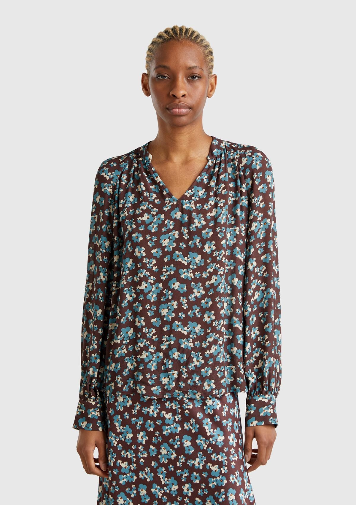 Kadın Kahverengi %100 Viskoz V Yaka Raglan Kol Bluz
