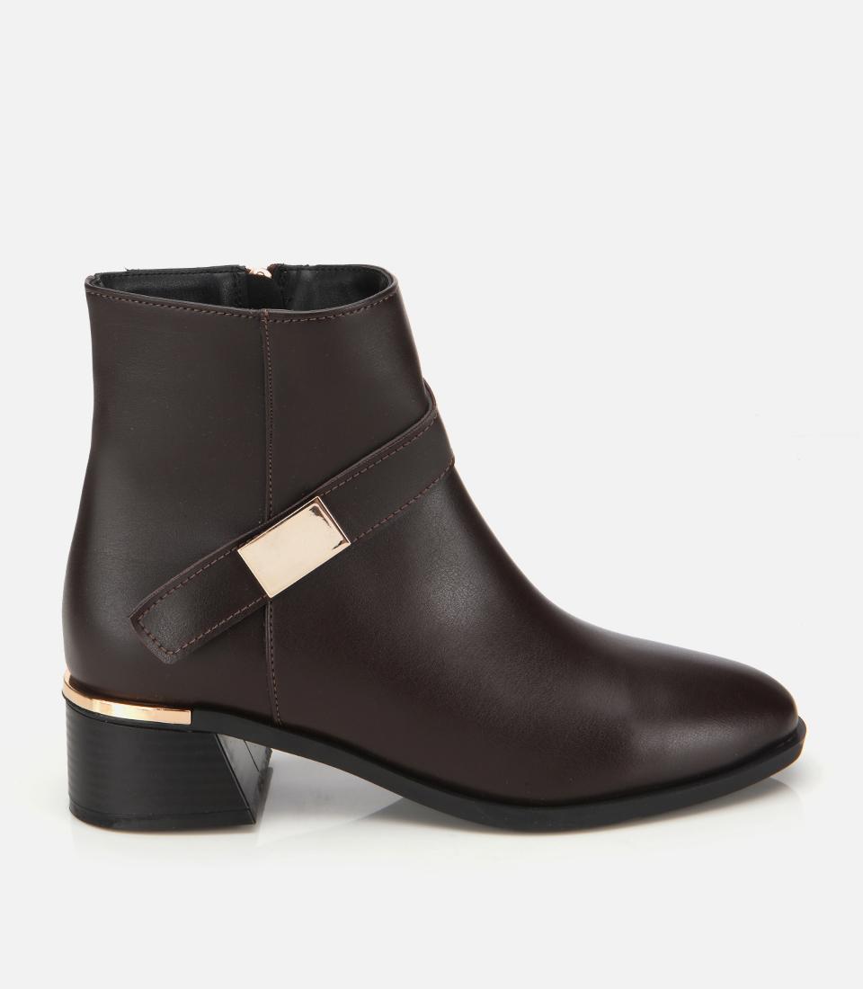 Kadın Kahverengi Metal Detaylı Bilekte Düz Bot