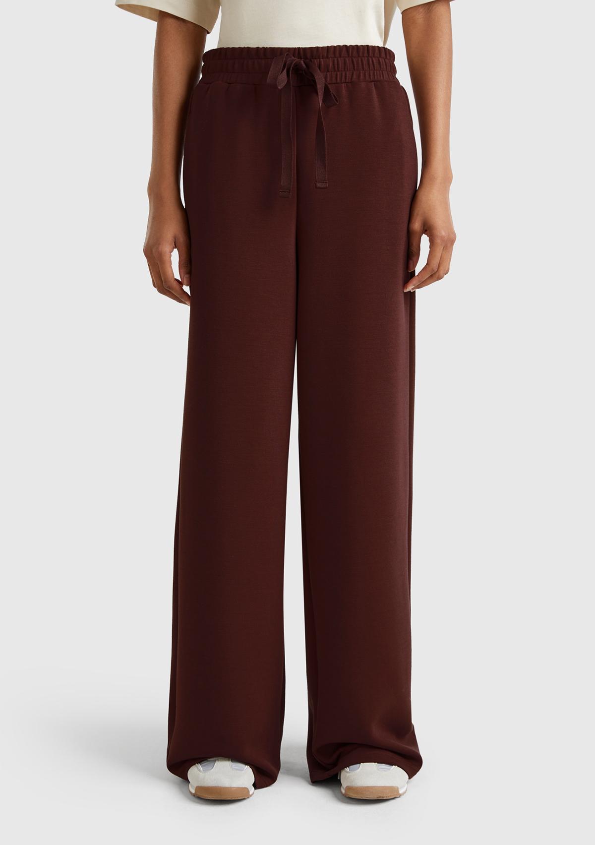 Kadın Kahverengi Modal Karışımlı Bol Paça Eşofman Altı