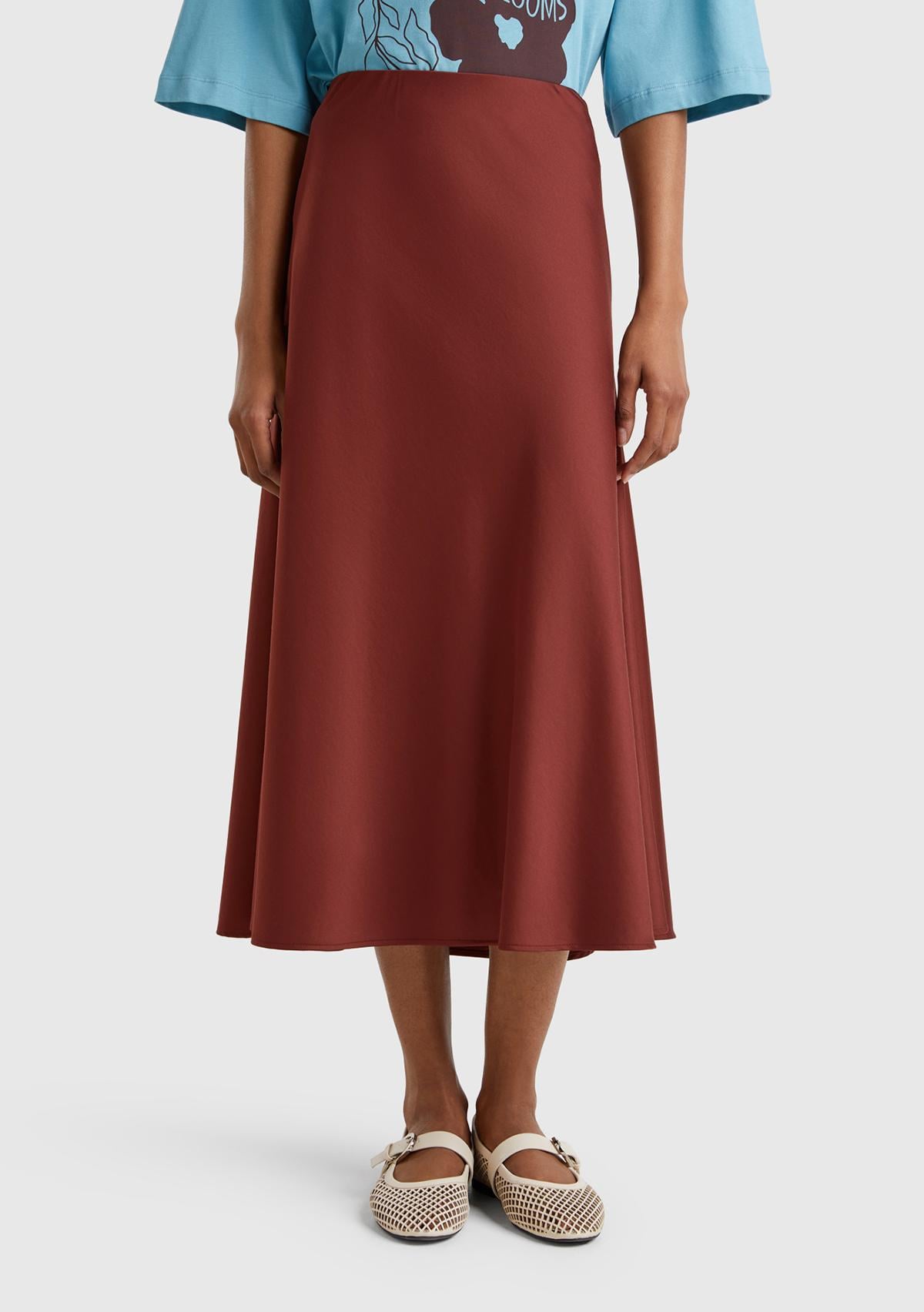Kadın Kahverengi Viskoz Karışımlı Uzun Etek