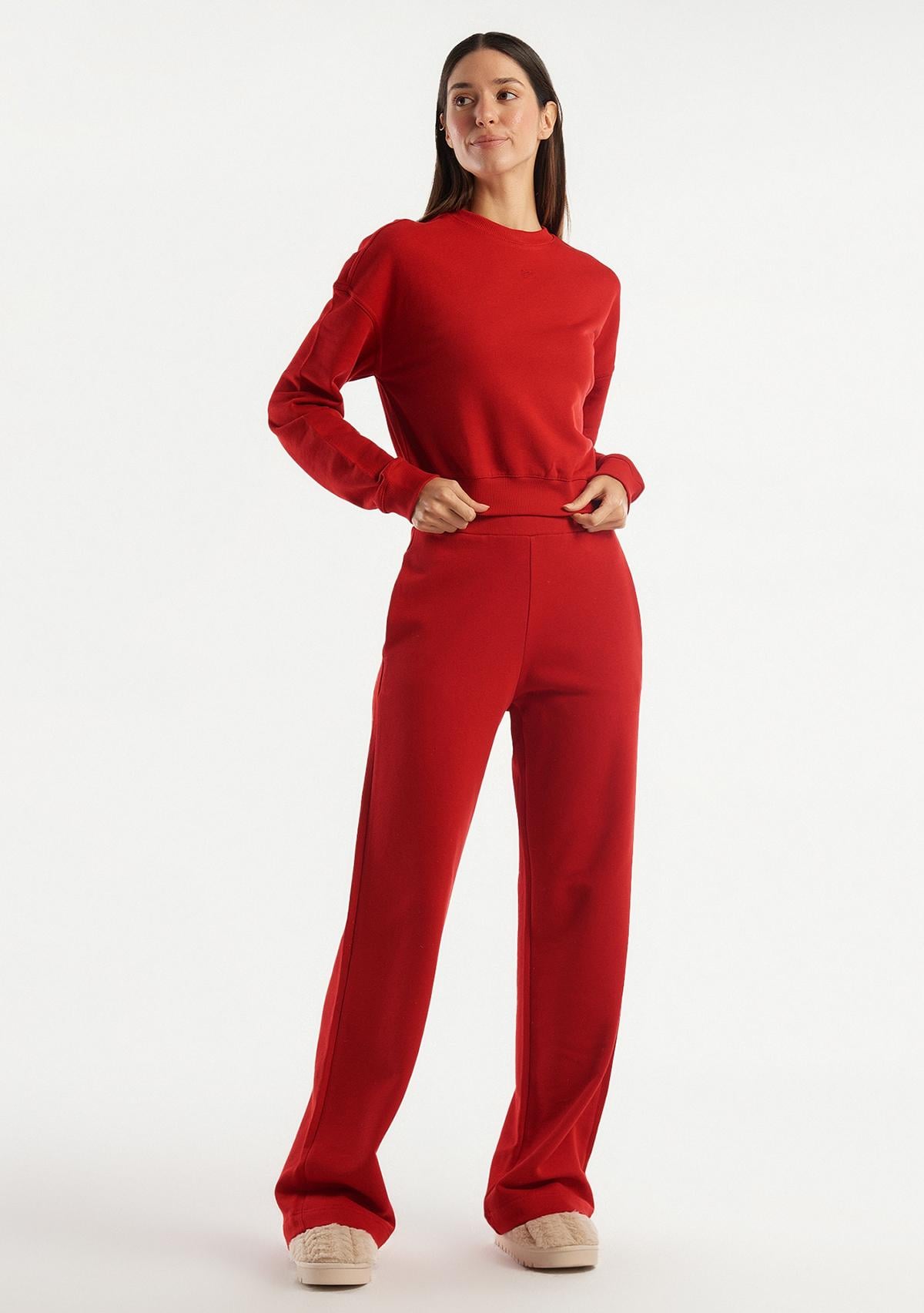 Kadın Kırmızı %100 Koton Rahat Kalıp Logolu Sweatshirt