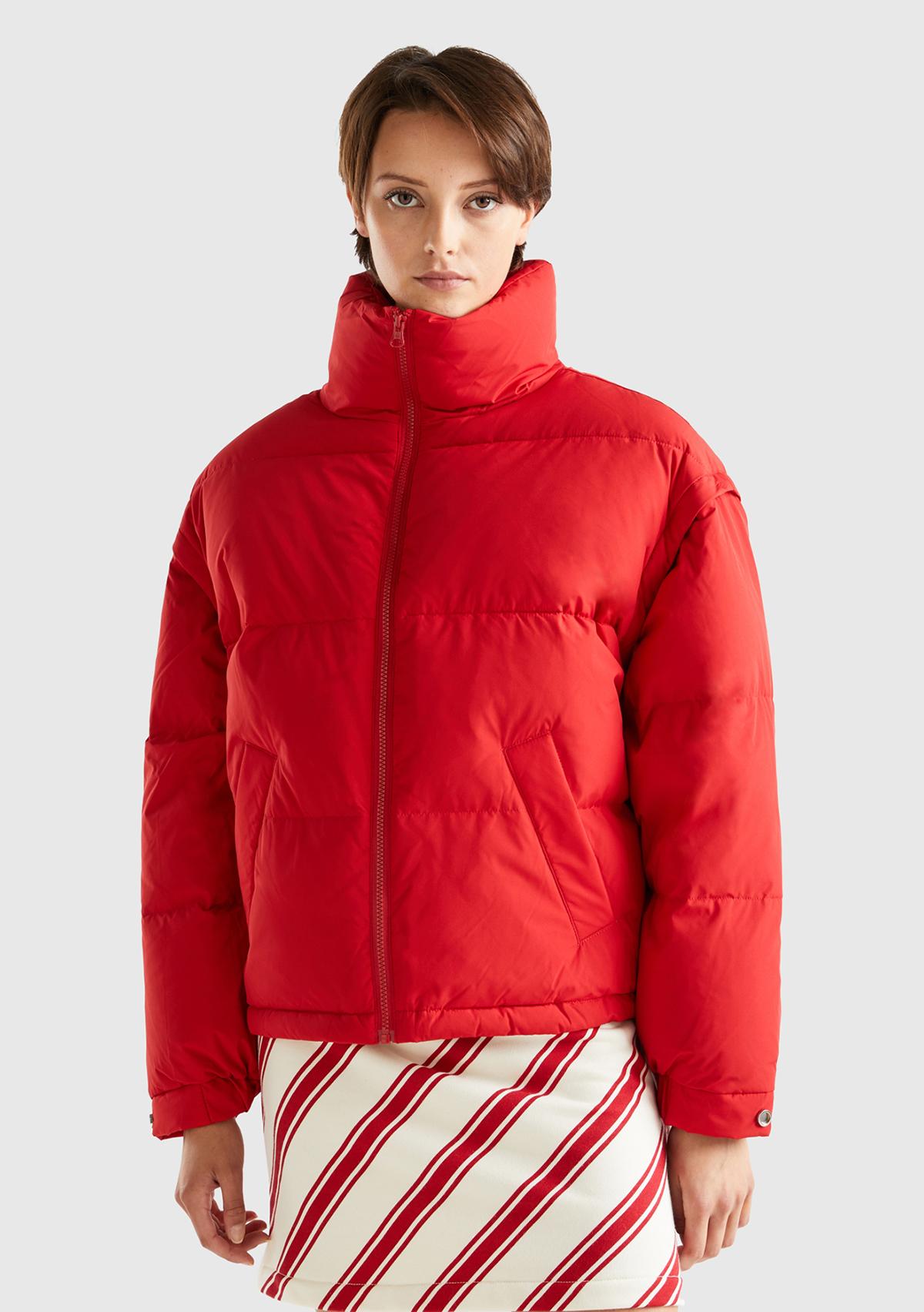 Kadın Kırmızı Kaz Tüyü Dolgulu Pufa Mont. Kaz Tüyü İçerir
