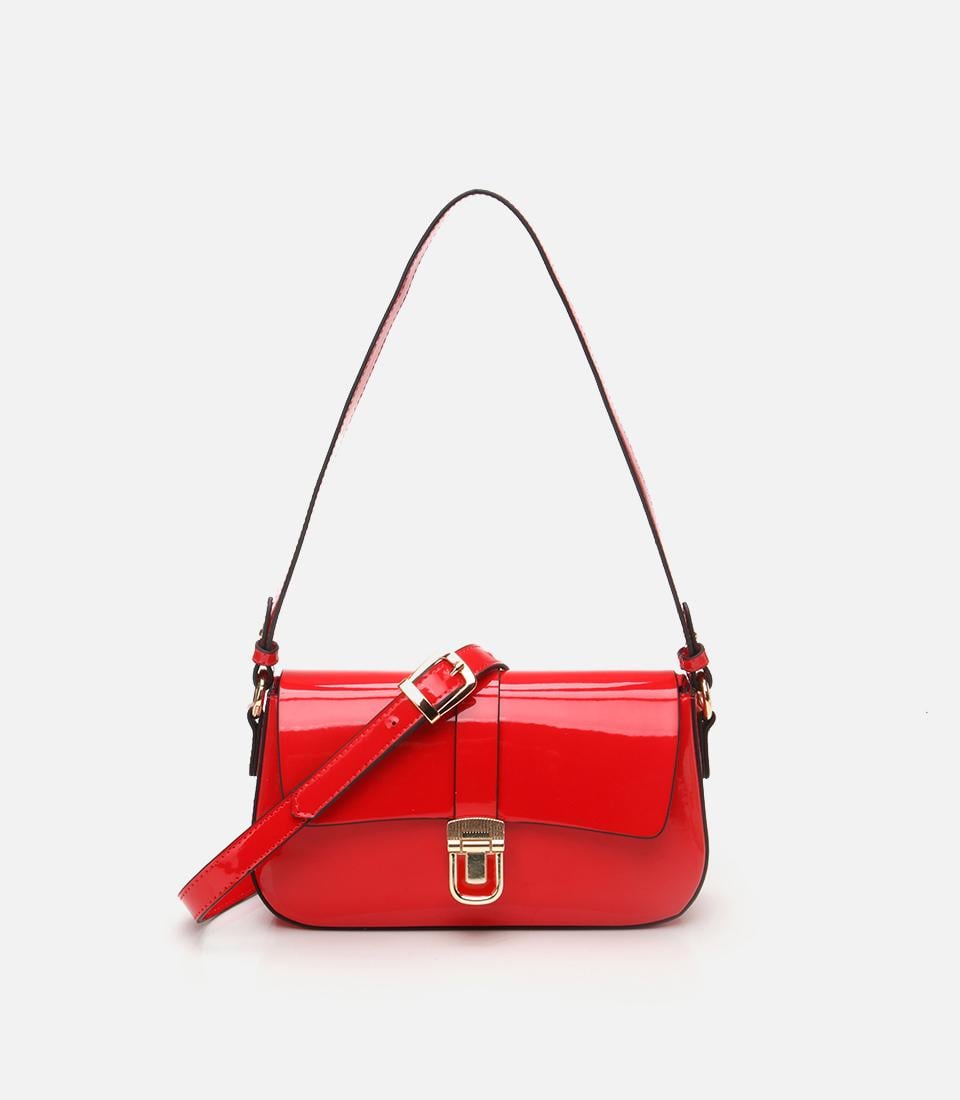 Kadın Kırmızı Kilit Detaylı Çapraz Askılı Çanta