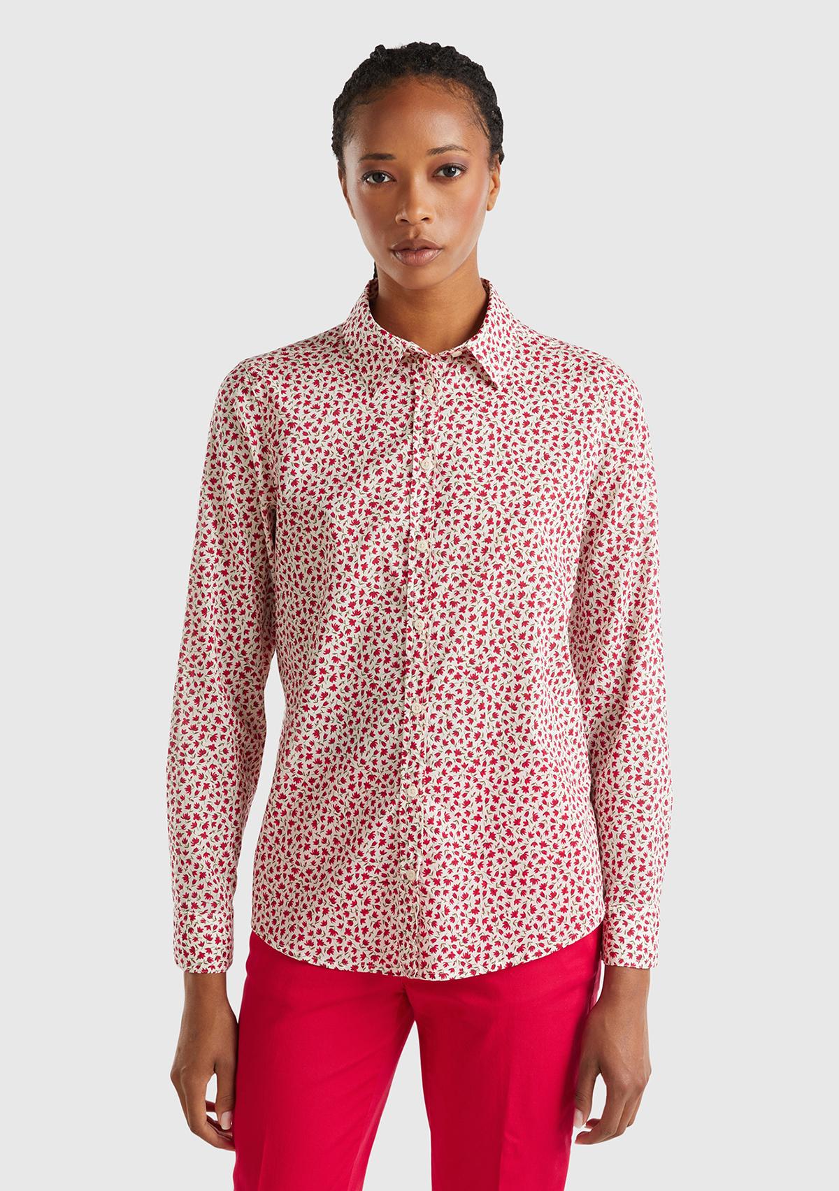 Kadın Kırmızı Mix %100 Koton Desenli Gömlek