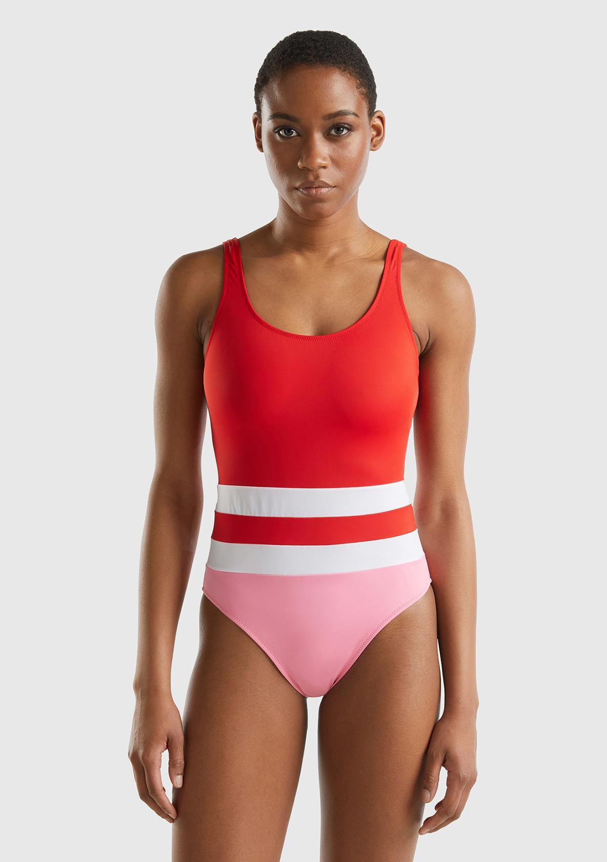 Kadın Kırmızı Mix Çok Renkli Derin Sırt Dekolteli Mayo