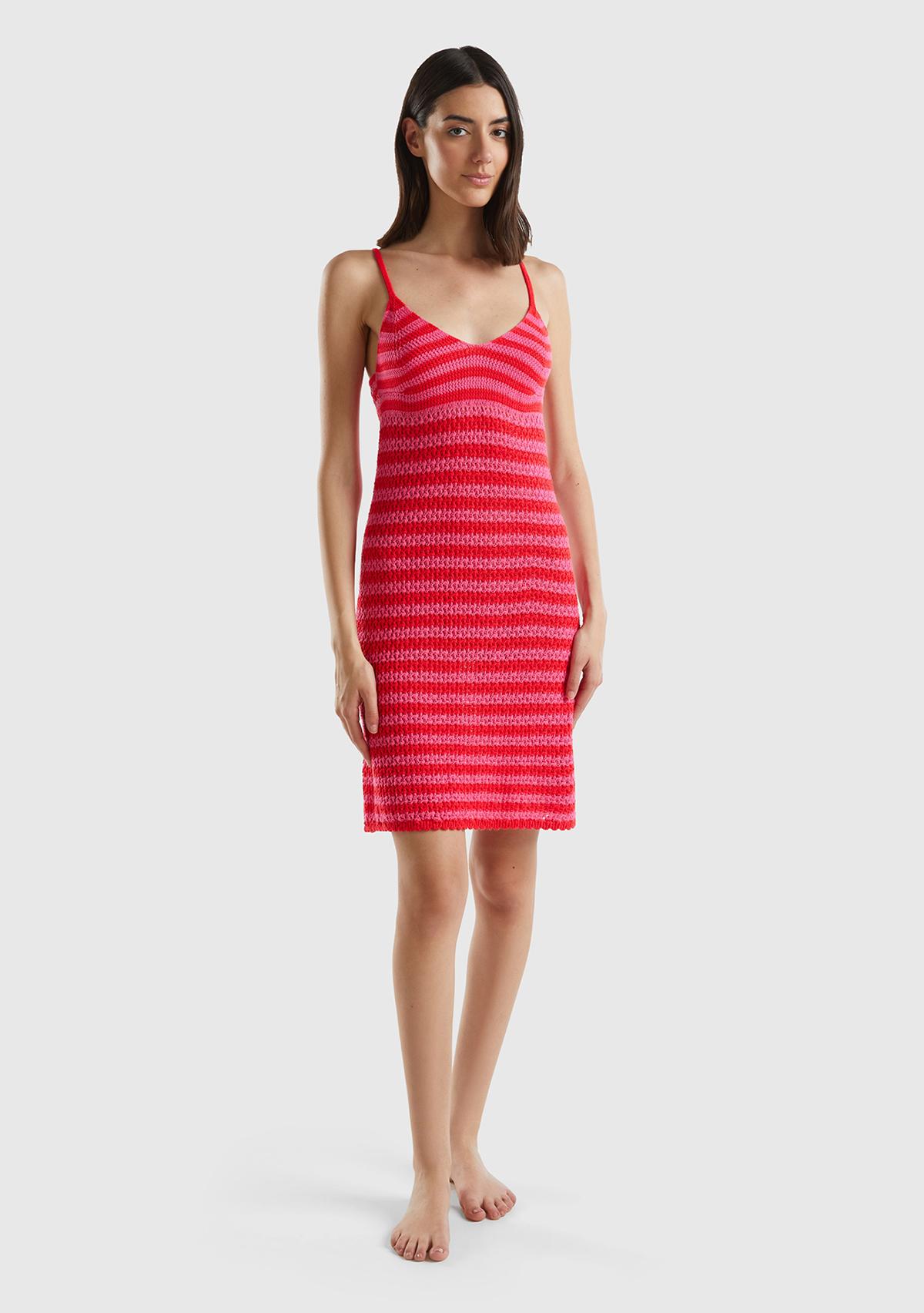 Kadın Kırmızı Mix Pamuk Karışımlı Tamamı Desenli V Yaka Askılı Elbise