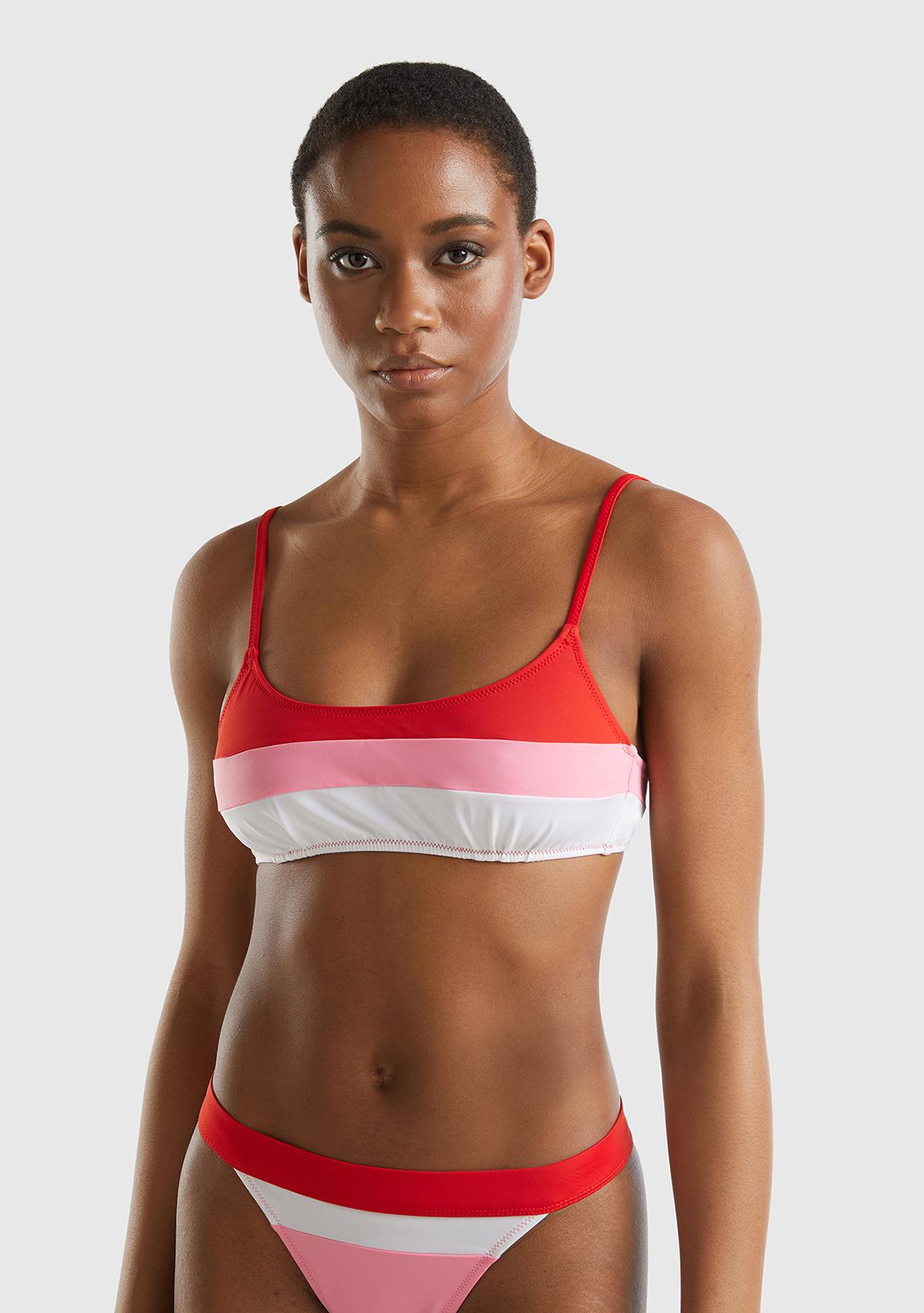 Kadın Kırmızı Mix Renk Bloklu Ayarlanabilir Askılı Bağlamalı Bikini Üstü