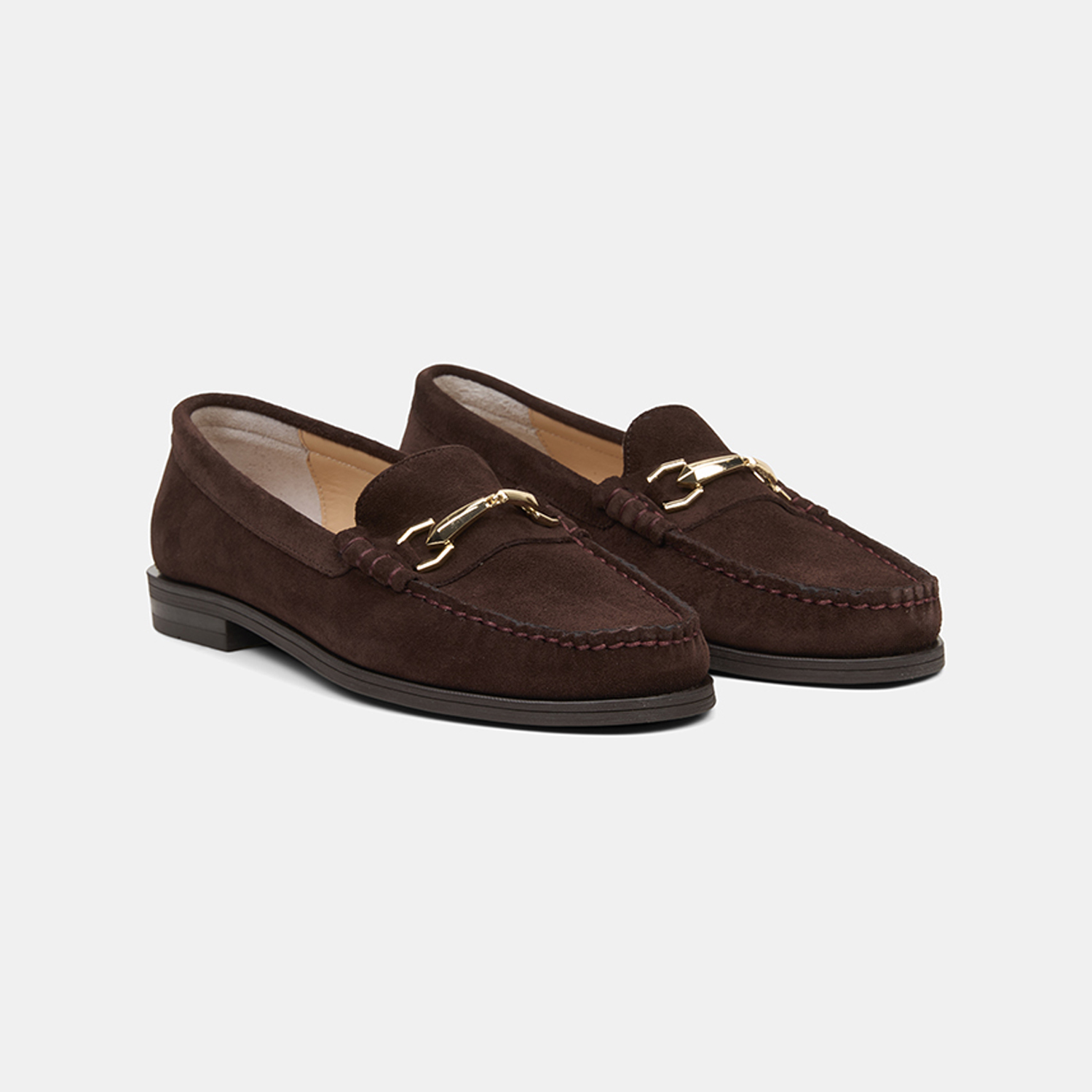 Kadın Koyu Kahve Metal Aksesuarlı Süet Loafer