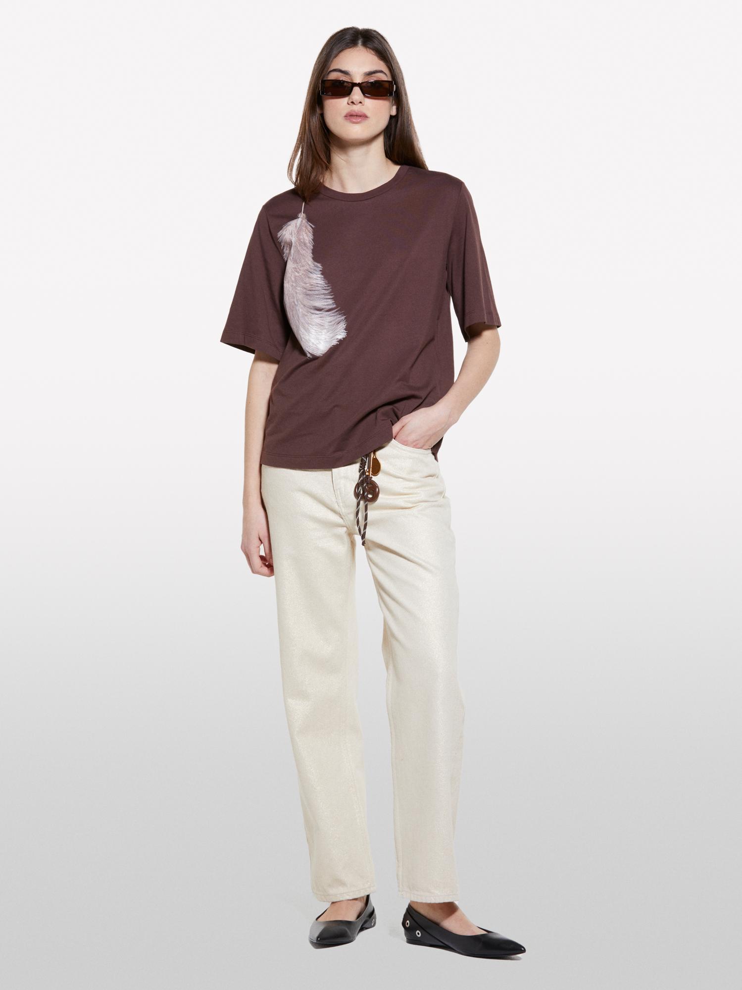 Kadın Koyu kahverengi %100 Pamuk Baskılı Bisiklet Yaka Regular Fit T-Shirt