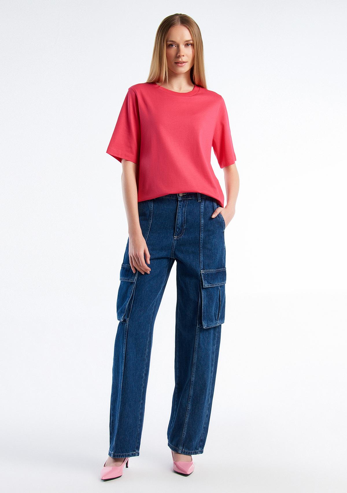 Kadın Koyu Pembe %100 Koton Boxy Fit T-Shirt