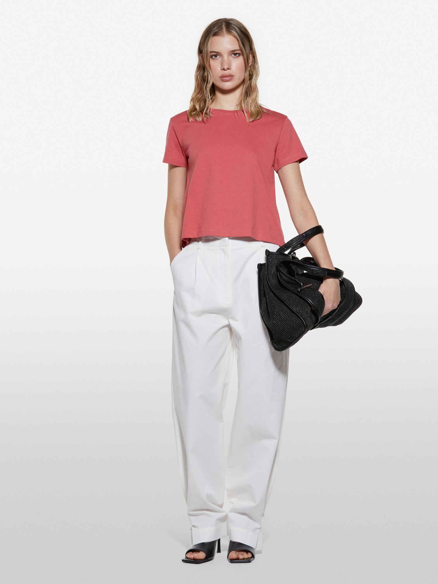 Kadın Koyu Pembe %100 Pamuk Bisiklet Yaka Boxy Fit T-Shirt
