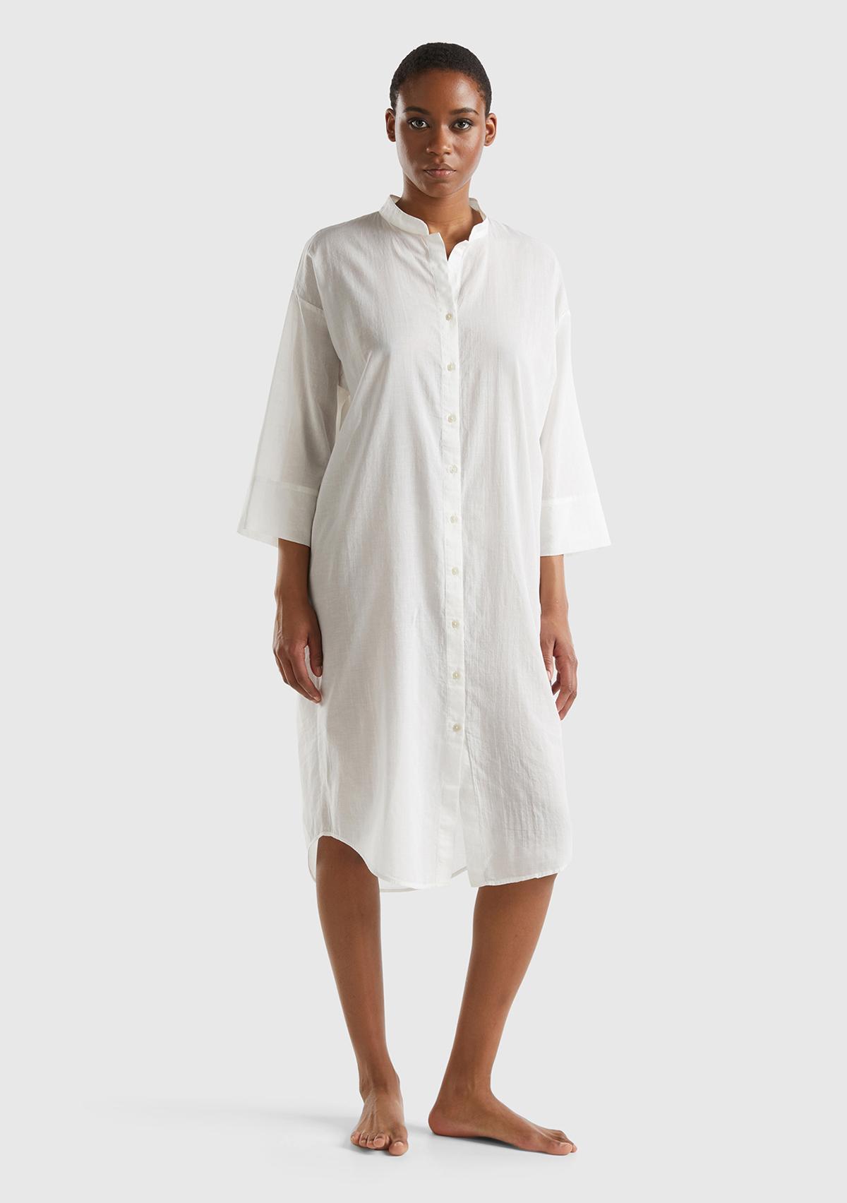 Kadın Krem %100 Pamuk Önü Düğmeli Hakim Yaka Gömlek Elbise