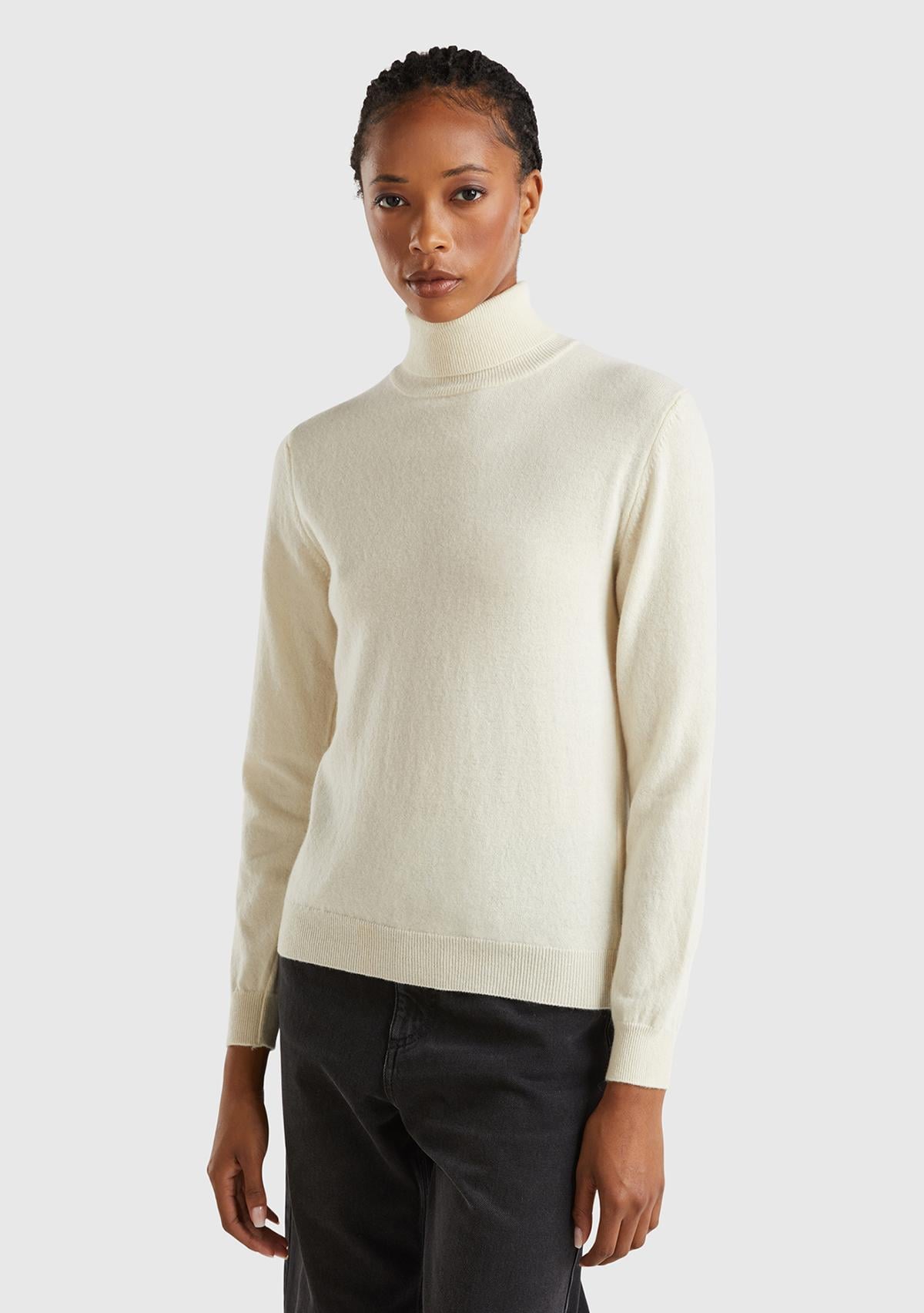 Kadın Krem Dik Yaka %100 Merino Kazak. Koyun Yünü İçerir