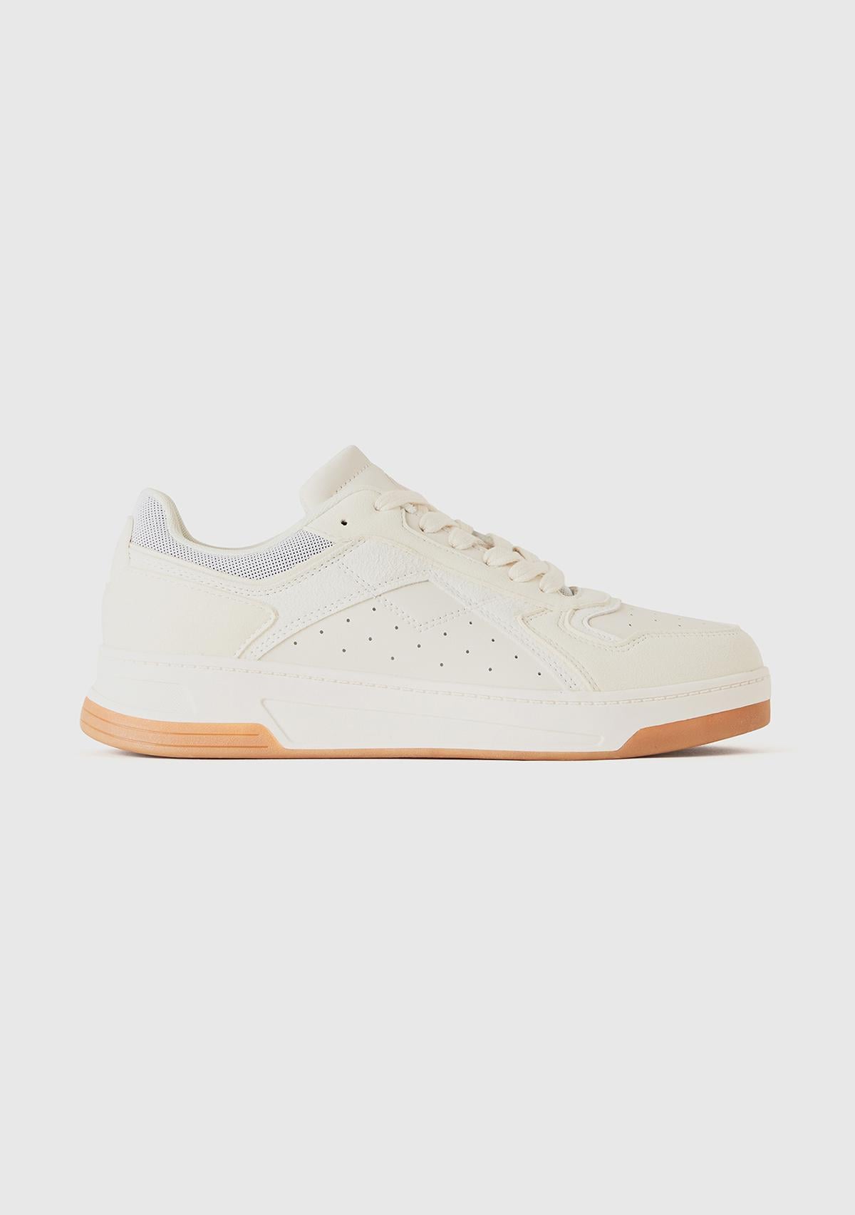 Kadın Krem İki Renkli Bağcıklı Spor Ayakkabı