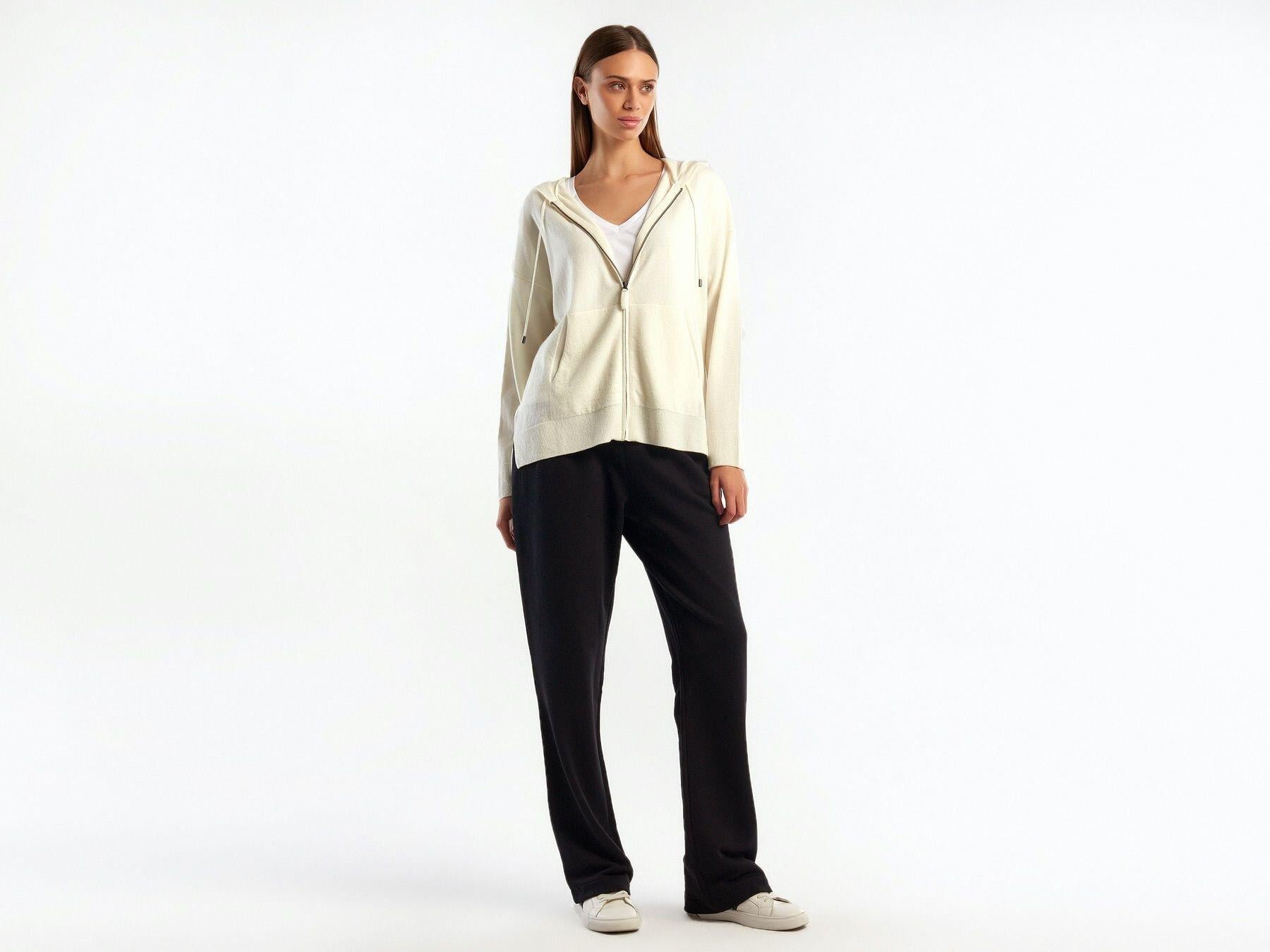 Kadın Krem Kapüşonlu Kaşmir Karışımlı Triko Eşofman Üstü