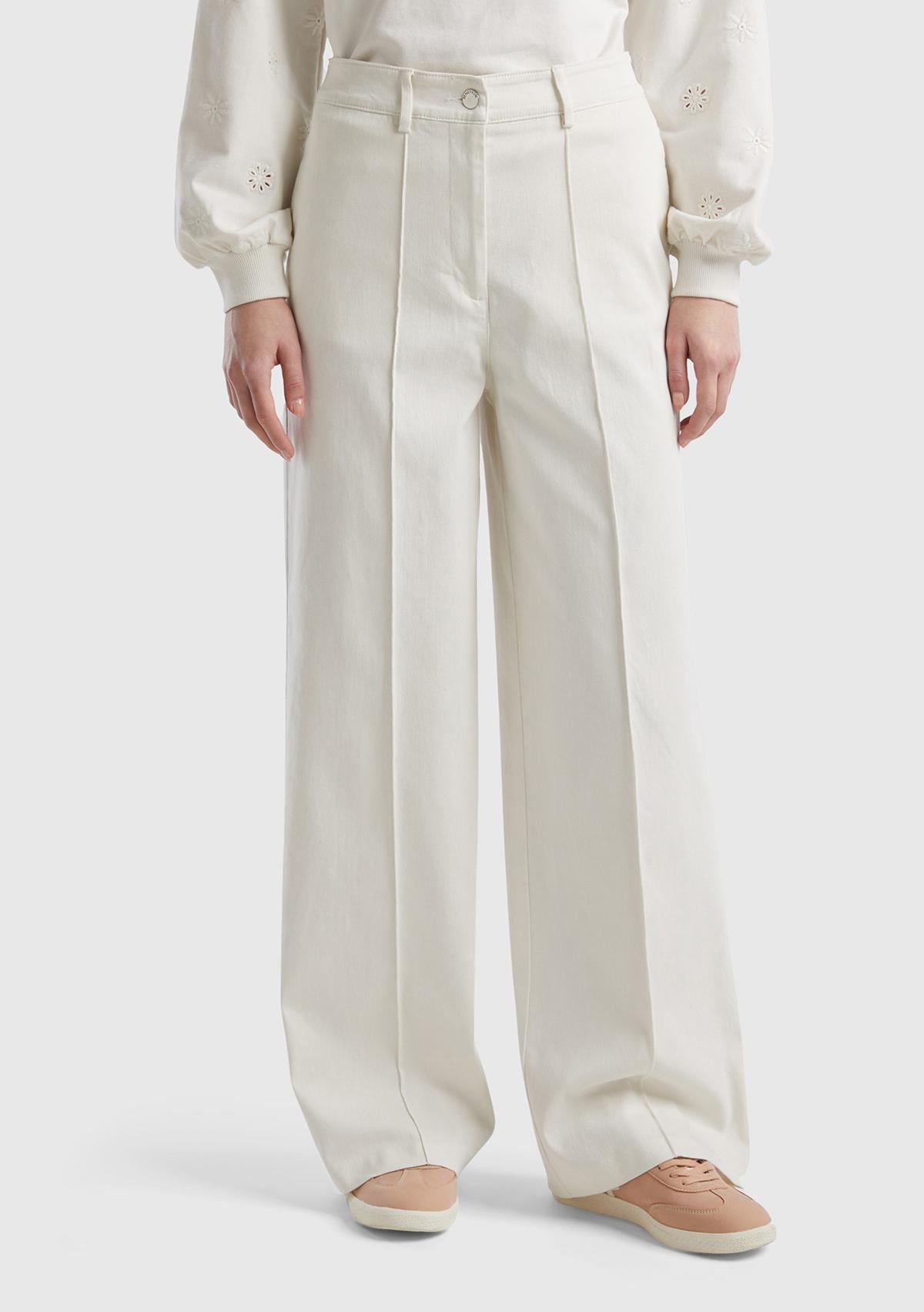 Kadın Krem Pamuk Karışımlı Ultra Yüksek Bel Geniş Paça Pantolon