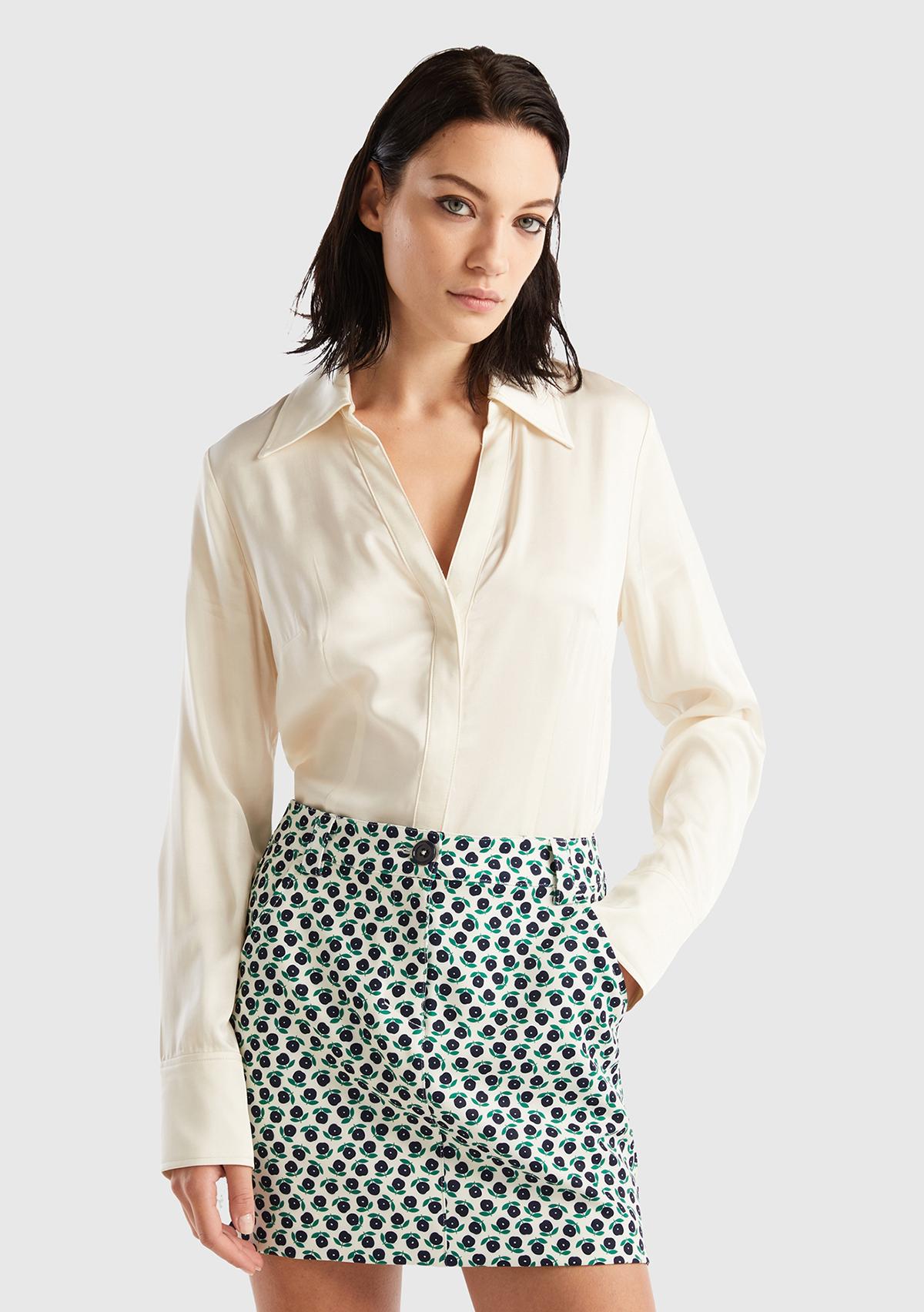 Kadın Krem Viskoz Gömlek