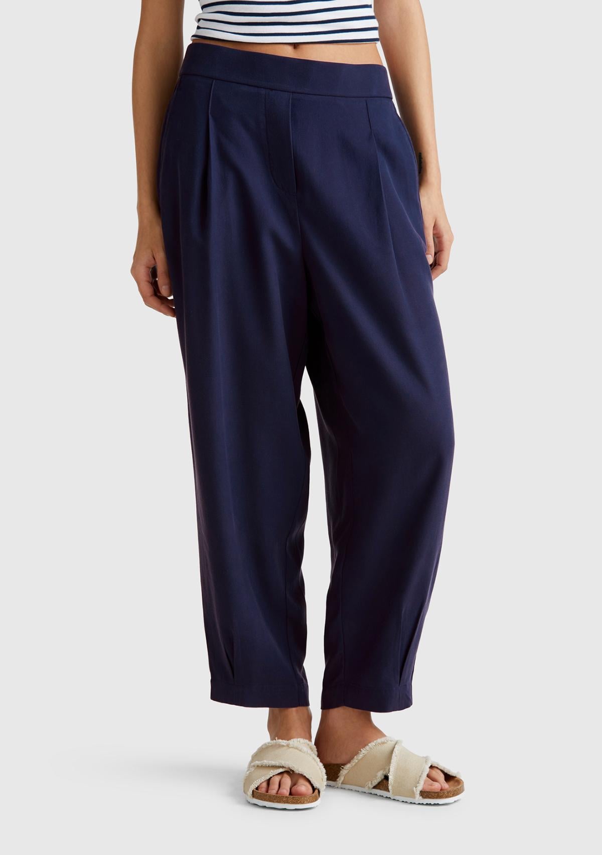 Kadın Lacivert %100 Liyosel Beli Lastikli Balon Fit Pantolon