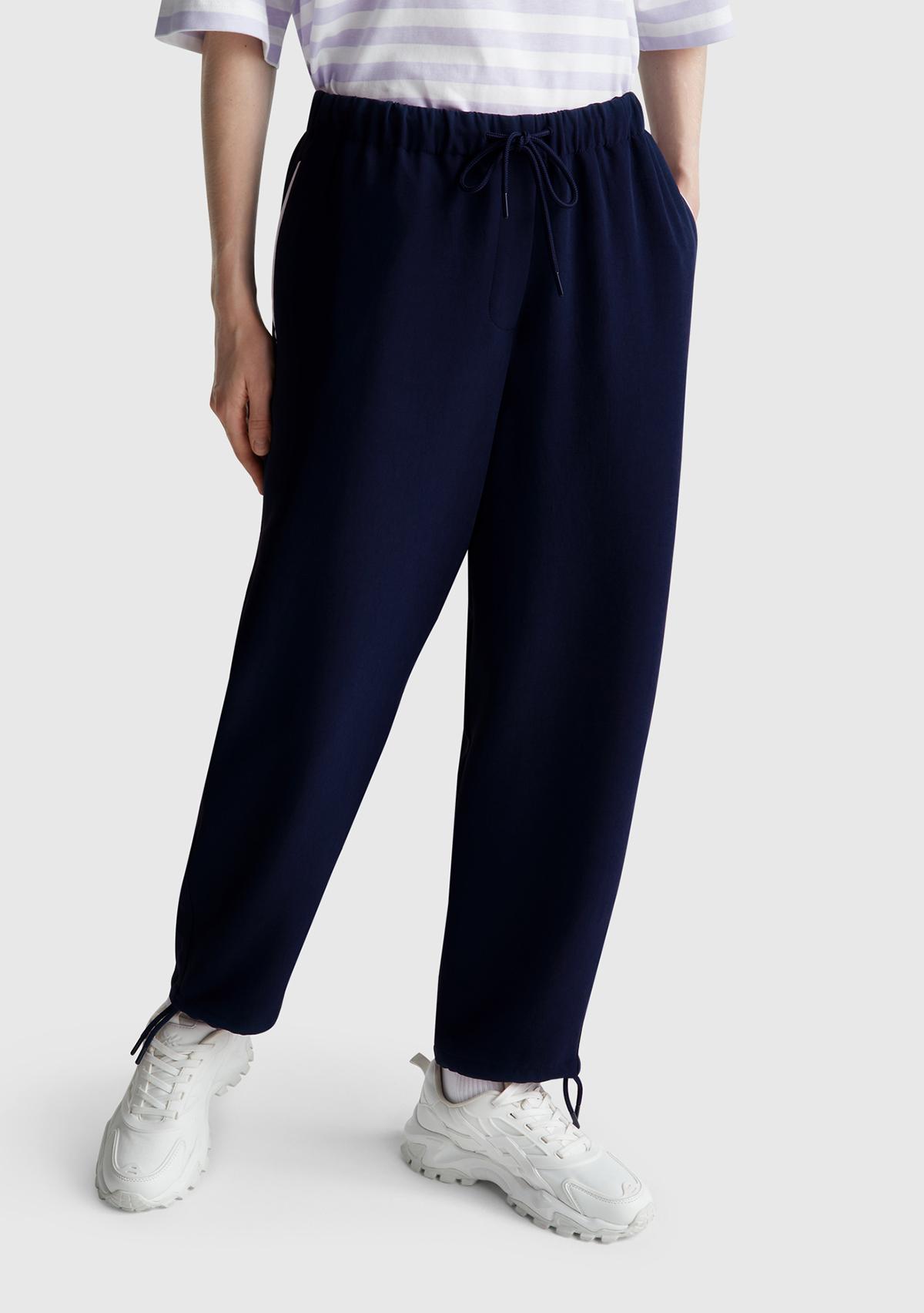 Kadın Lacivert Beli Bağcıklı Cepli Pantolon