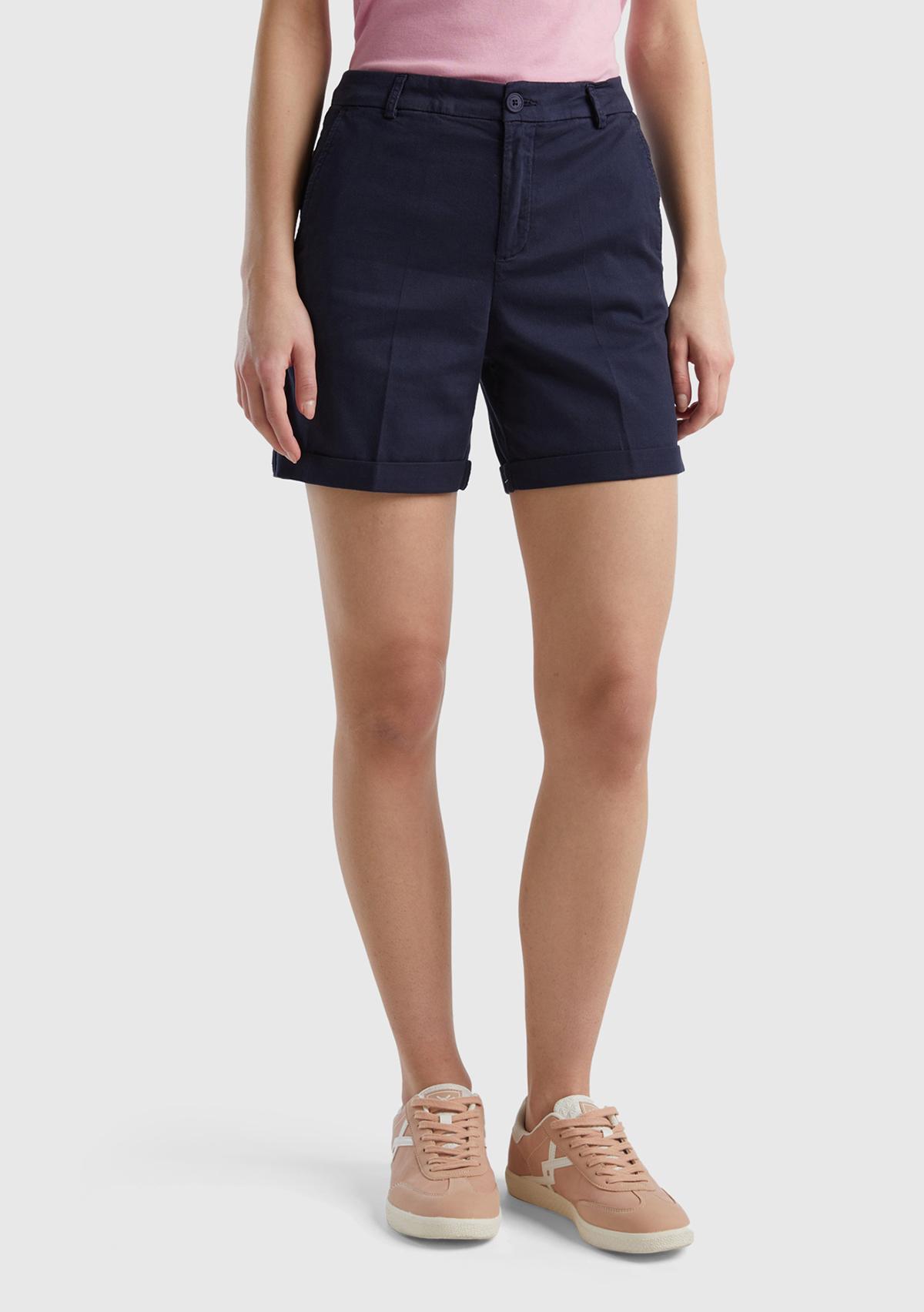 Streç pamuklu kumaştan üretilmiş, önü cepli, kıvrık paçalı, arkası pileli ve düğmeli cepli, kemer delikli kadın kısa şort. Rahatlığı ve feminen stili bir arada deneyimlemek isteyen zevk sahibi kadınlar için... Yaz mevsimlerinin favori parçası.