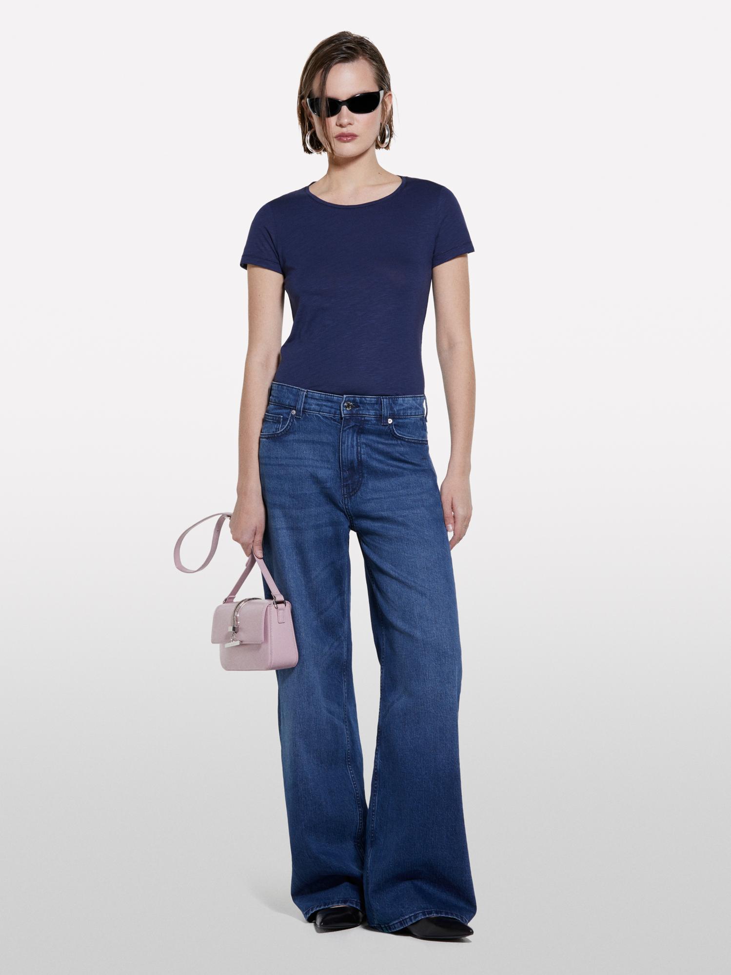 Kadın Lacivert Pamuk Modal Karışımlı Normal Kalıp Bisiklet Yaka T-Shirt