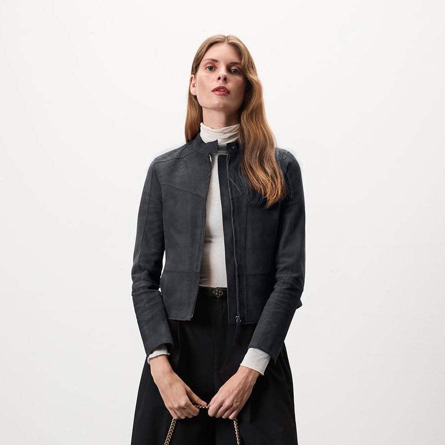 Kadın hafif hakim yakalı fit süet deri ceket. Önden metal fermuar kapamalıdır. Yakada gizli çıtçıt detayı mevcuttur. Önde yandan girişli cebi bulunmaktadır. Ürün üzerine özel olarak dekoratif kesim ve dikişler ile hareketlilik verilmiştir. %100 koyun derisi olup astarsız çalışılmıştır. Bu ürün, et endüstrisinin yan ürünü olarak elde edilen ve sürdürülebilir yöntemler ile Leather Working Group Altın sertifikalı Desa tesislerinde tabaklanan deriler kullanılarak üretilmiştir.-Kadın hafif hakim yakalı fit süet deri ceket. Önden metal fermuar kapamalıdır. Yakada gizli çıtçıt detayı mevcuttur. Önde yandan girişli cebi bulunmaktadır. Ürün üzerine özel olarak dekoratif kesim ve dikişler ile hareketlilik verilmiştir. %100 koyun derisi olup astarsız çalışılmıştır. Bu ürün, et endüstrisinin yan ürünü olarak elde edilen ve sürdürülebilir yöntemler ile Leather Working Group Altın sertifikalı Desa tesislerinde tabaklanan deriler kullanılarak üretilmiştir.