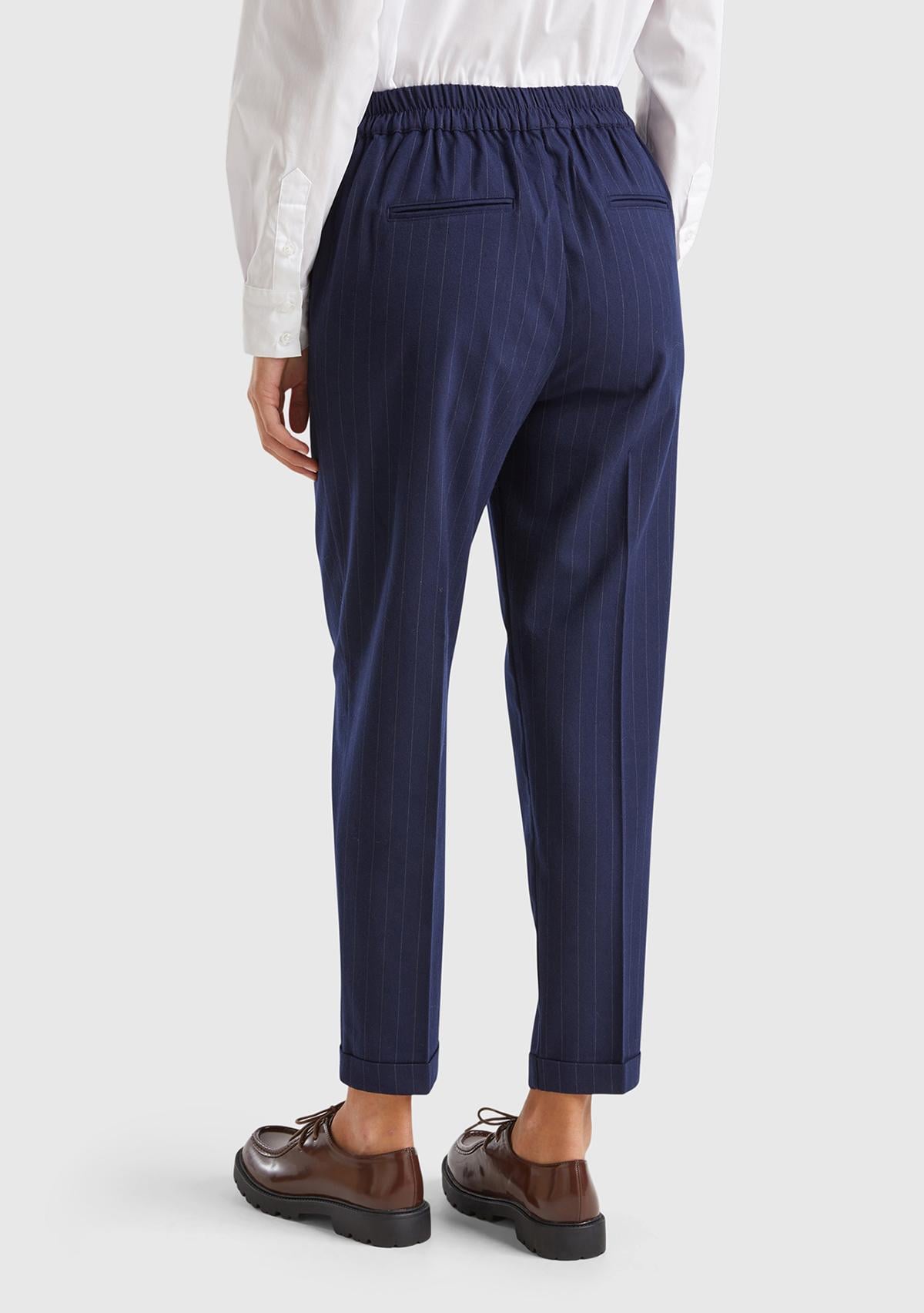 Kadın Lacivert Viskoz Karışımlı Beli Lastikli İnce Çizgili Jogger Pantolon