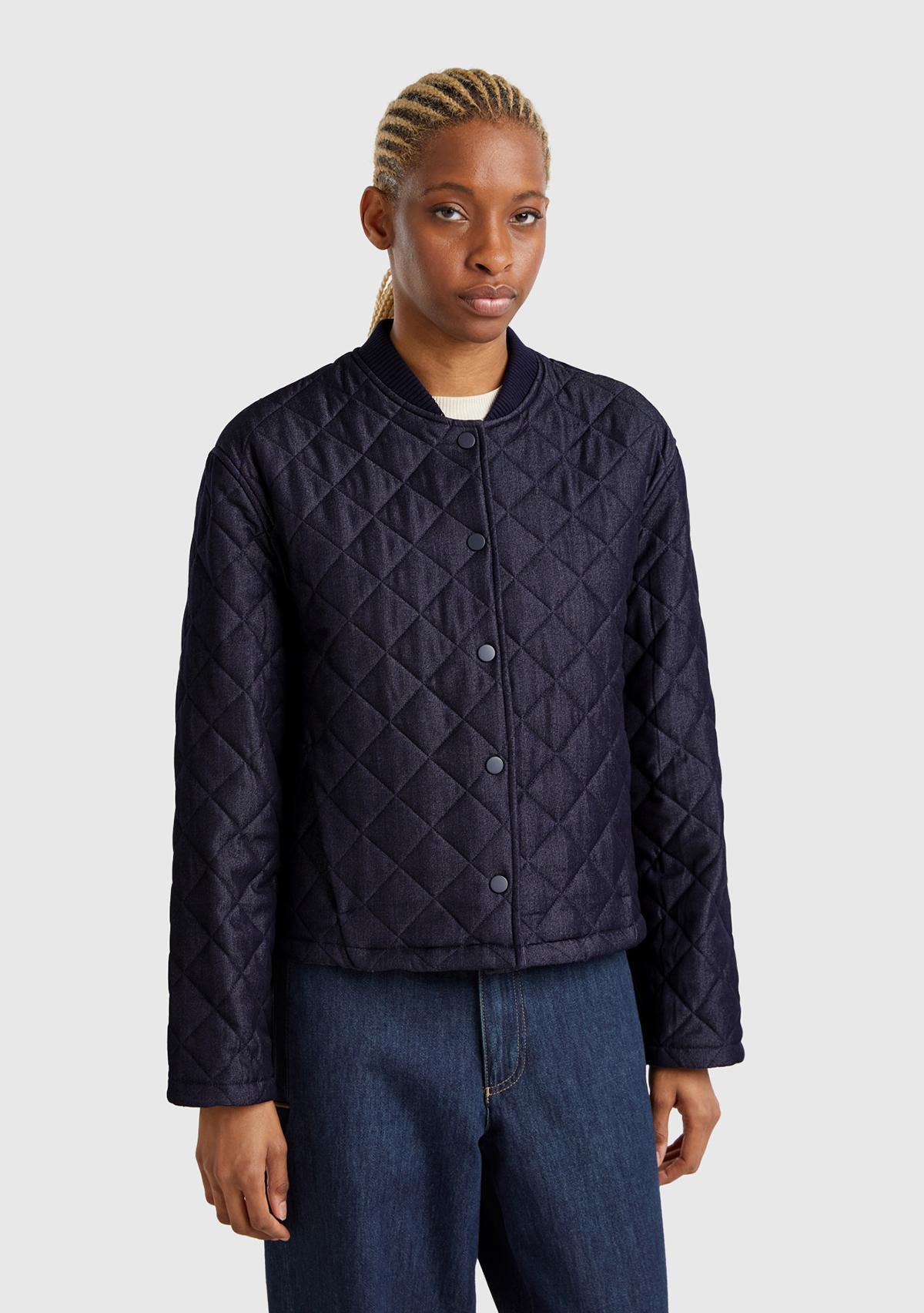Kadın Lacivert Viskoz Karışımlı Denim Efekkli Kapitone Mont