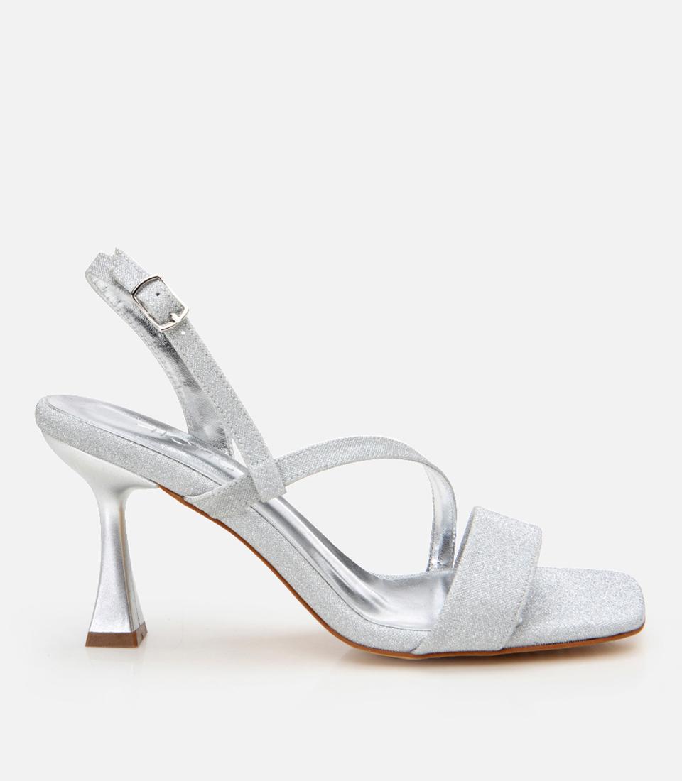 Kadın Lame Simli Abiye Topuklu Sandalet