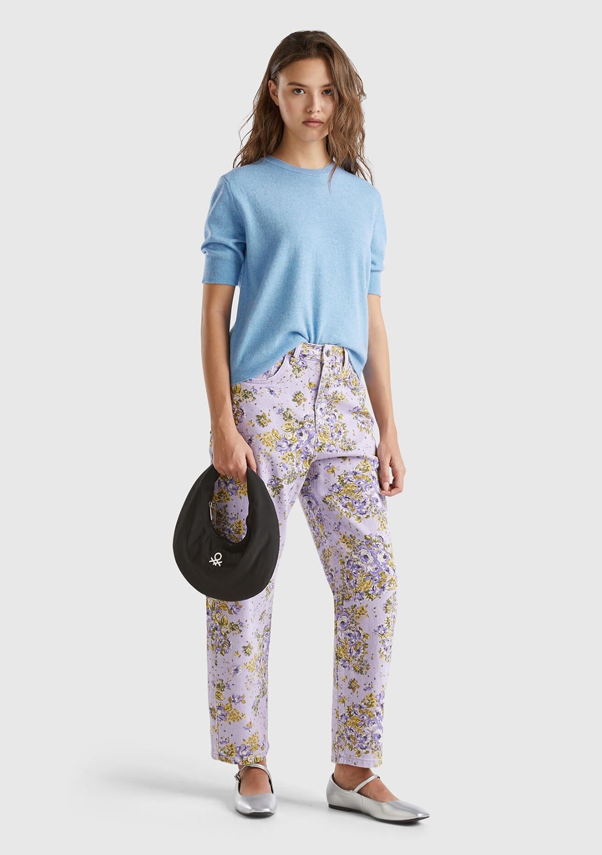 Kadın Lila %100 Pamuk Tamamı Çiçek Desenli 5 Cepli Balon Pantolon