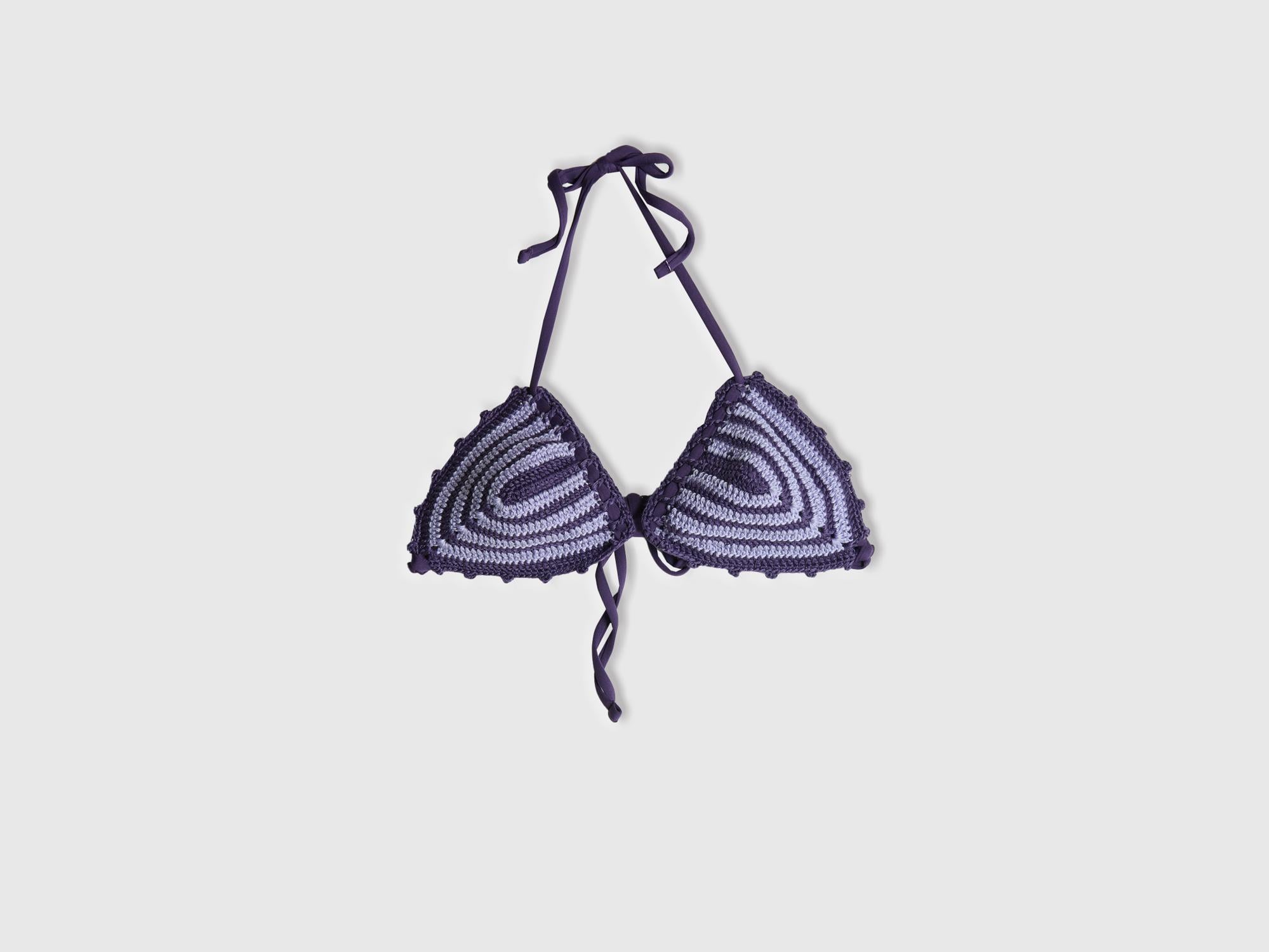 Kadın Lila Mix Örgü Motifli Boyundan Bağlamalı Triko Bikini Üstü