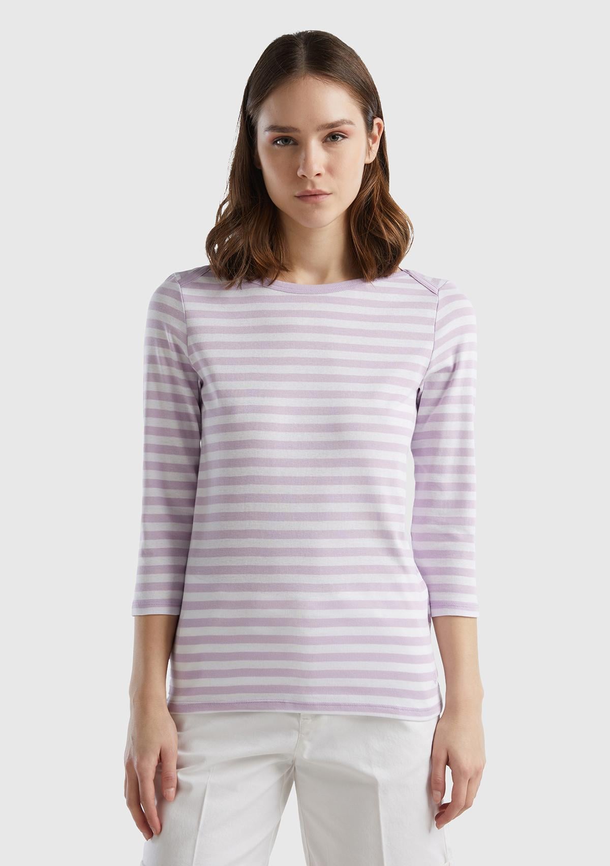 Kadın Lila Truvakar Kol Çizgili T-shirt