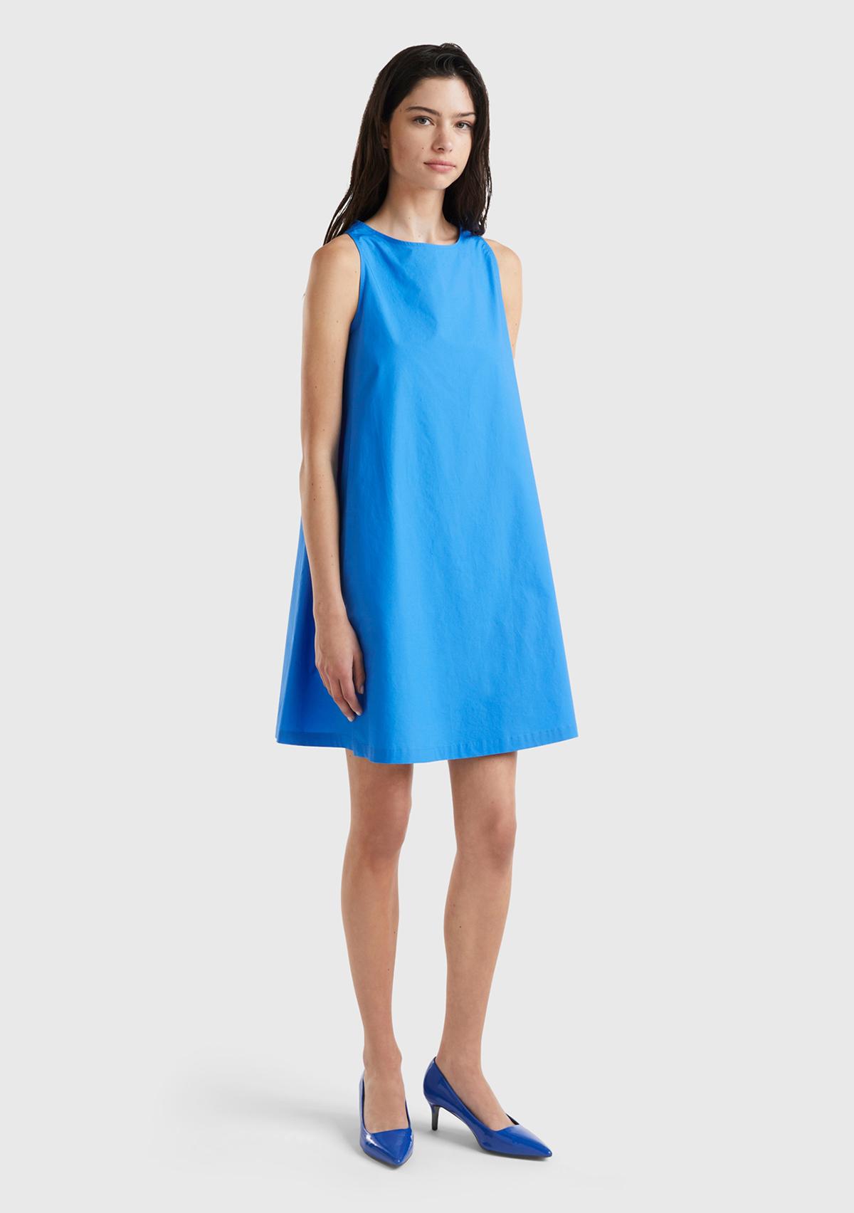 Kadın Mavi %100 Koton Kolsuz Midi Boy Elbise