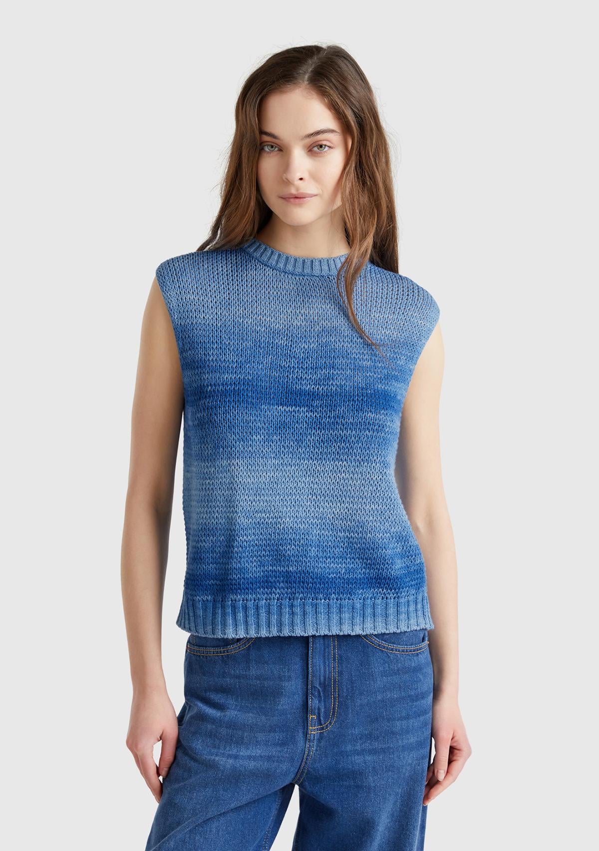 Kadın Mavi %100 Pamuk Gölge Efektli Ribanalı Relax Fit Süveter