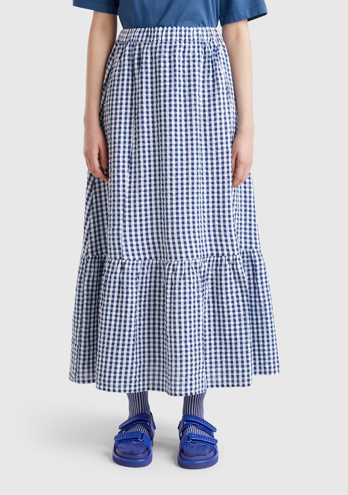 Kadın Mavi %100 Pamuk Pötikareli Beli Lastikli Uzun Etek