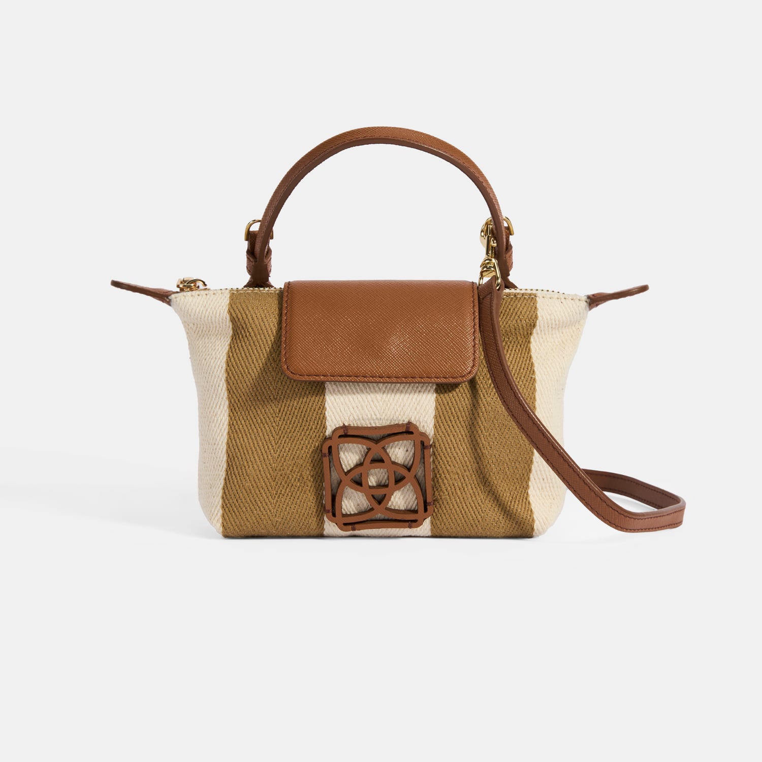 Kadın Monogram Logolu Vizon Çizgili Kumaş El Çantası