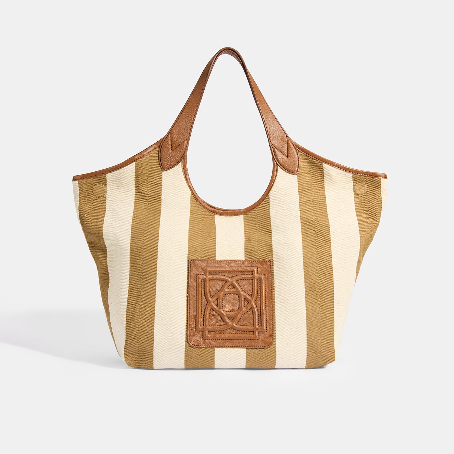 Kadın Monogram Logolu Vizon Çizgili Kumaş Omuz Çantası