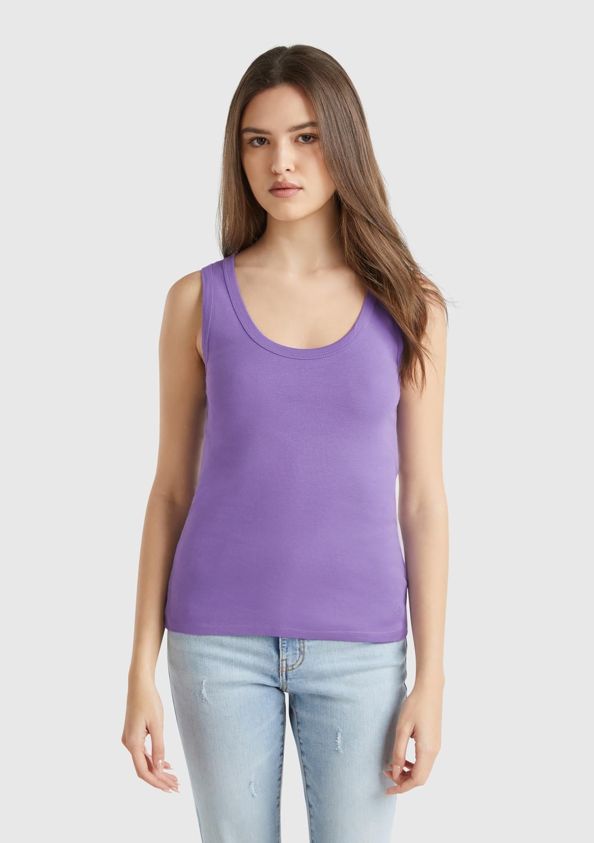 Kadın Mor %100 Pamuk Ucu Logo İşlemeli Slim Fit Yuvarlak Yaka Atlet