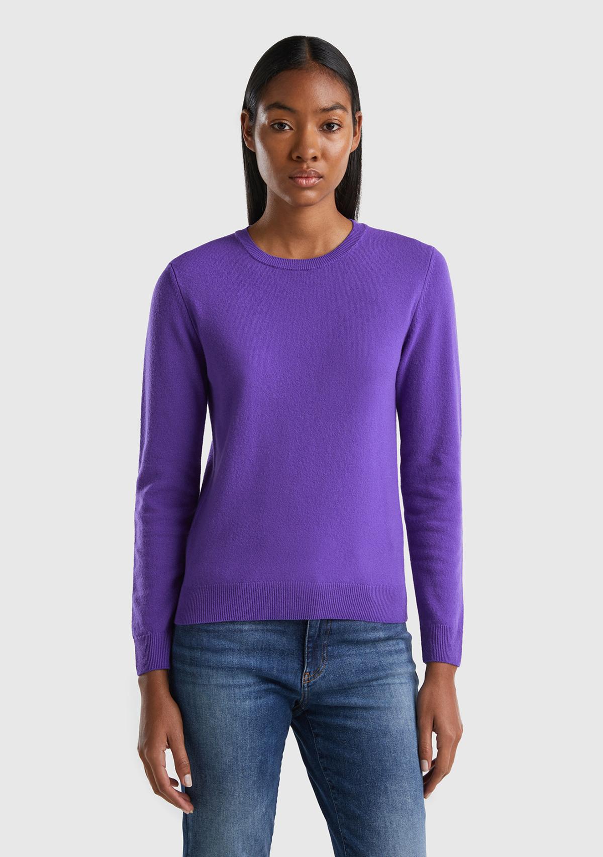 Kadın Mor Bisiklet Yaka Merino Kazak. Koyun Yünü İçerir